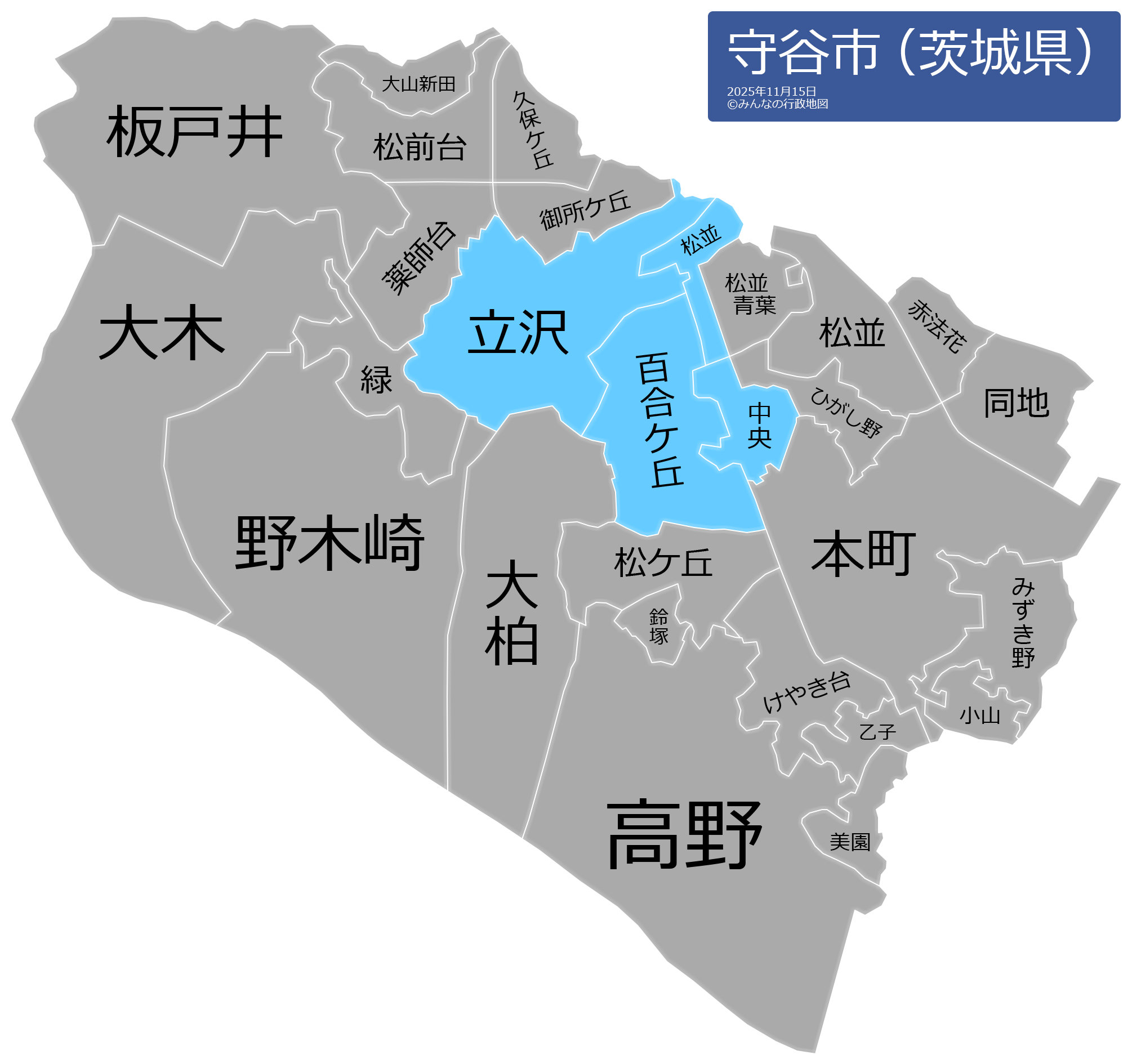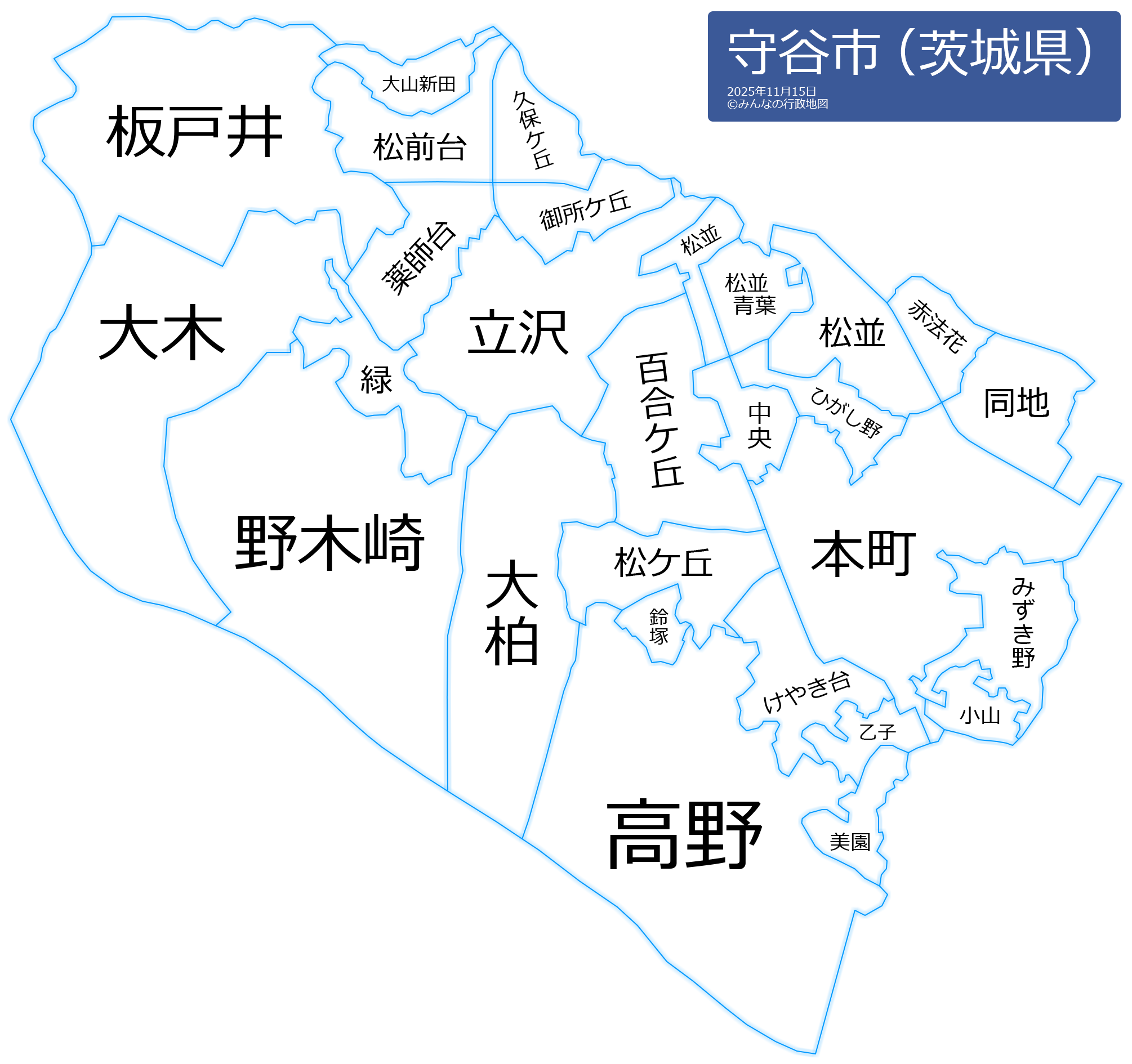 守谷市の地名と読み仮名
