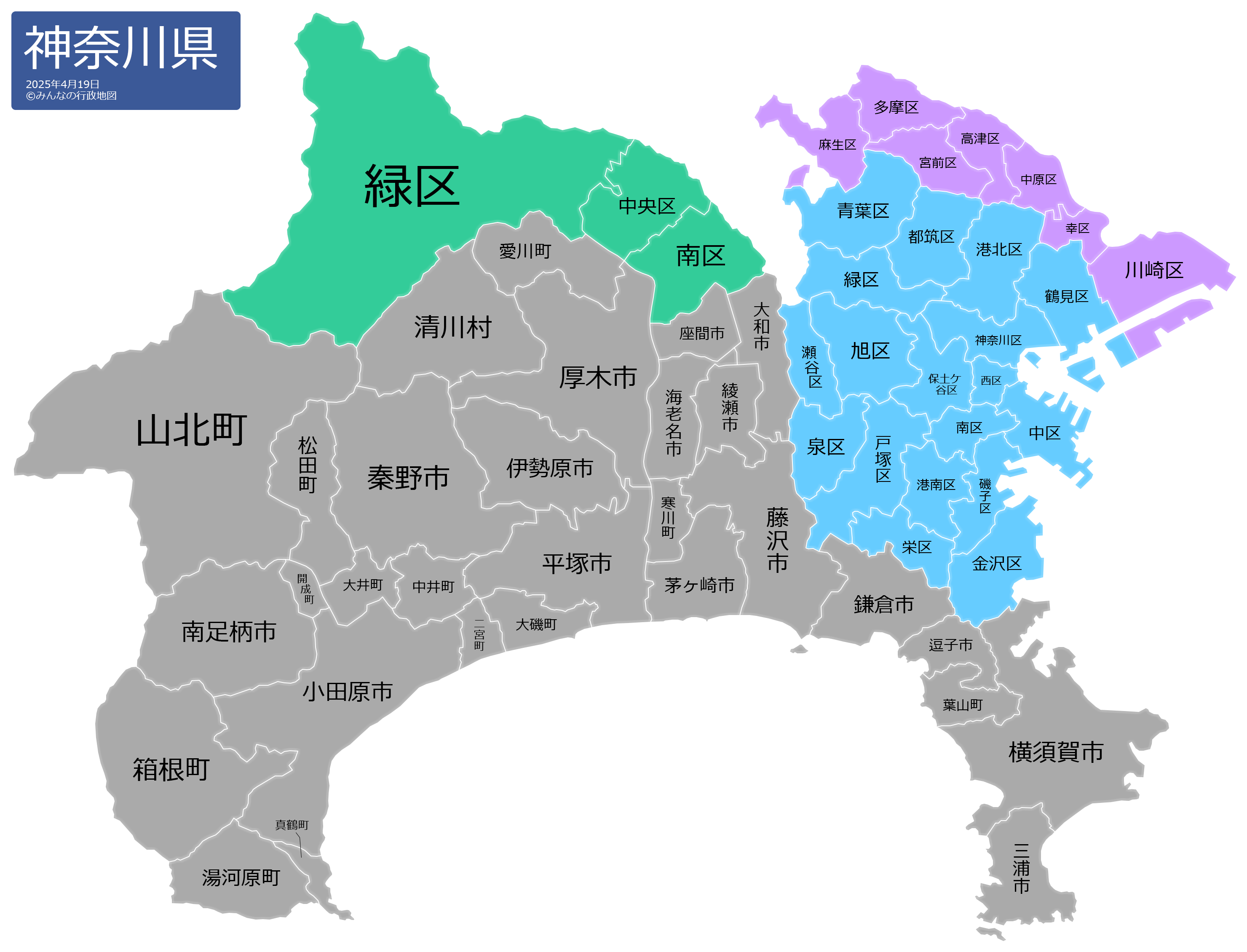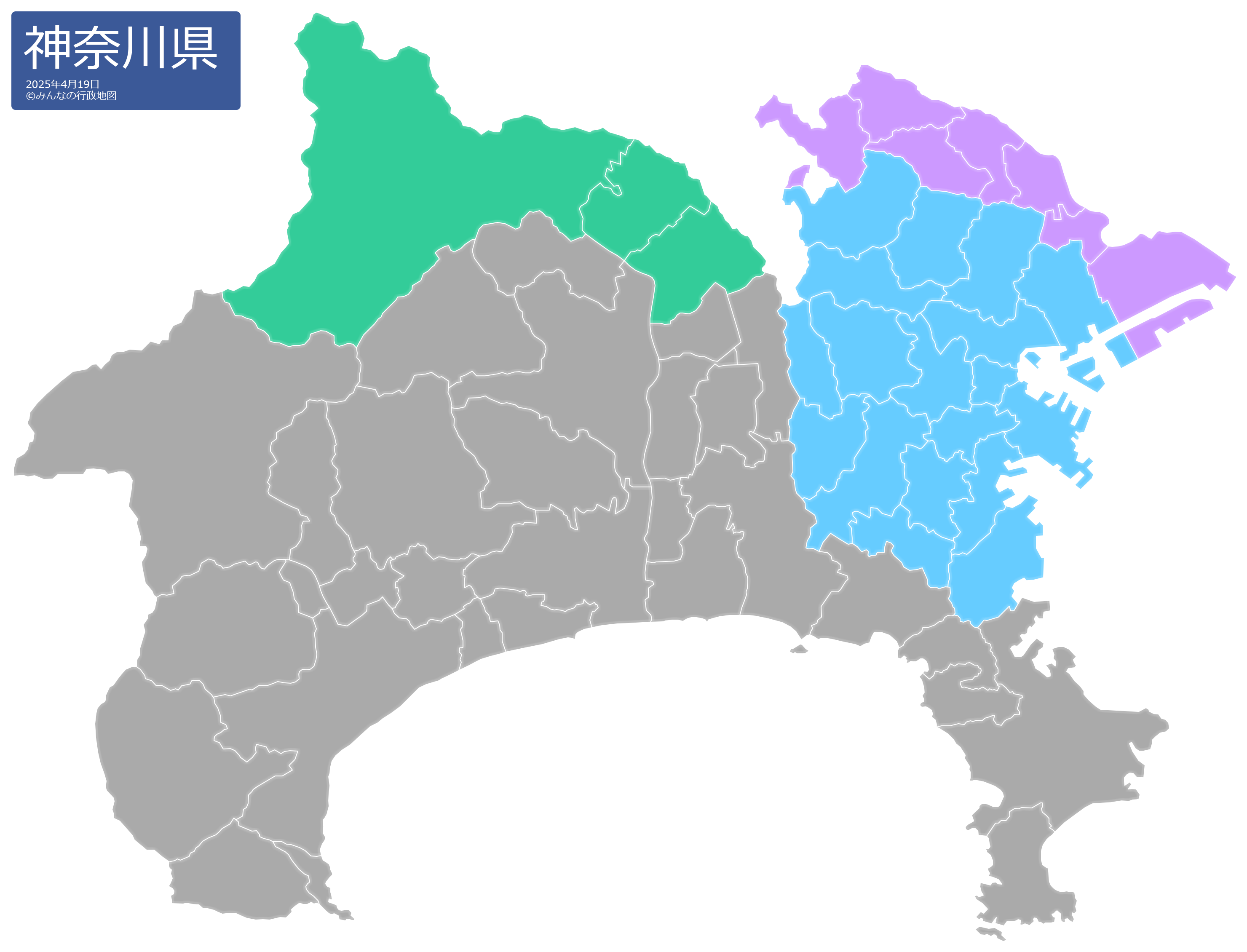 この神奈川県の行政地図は、
