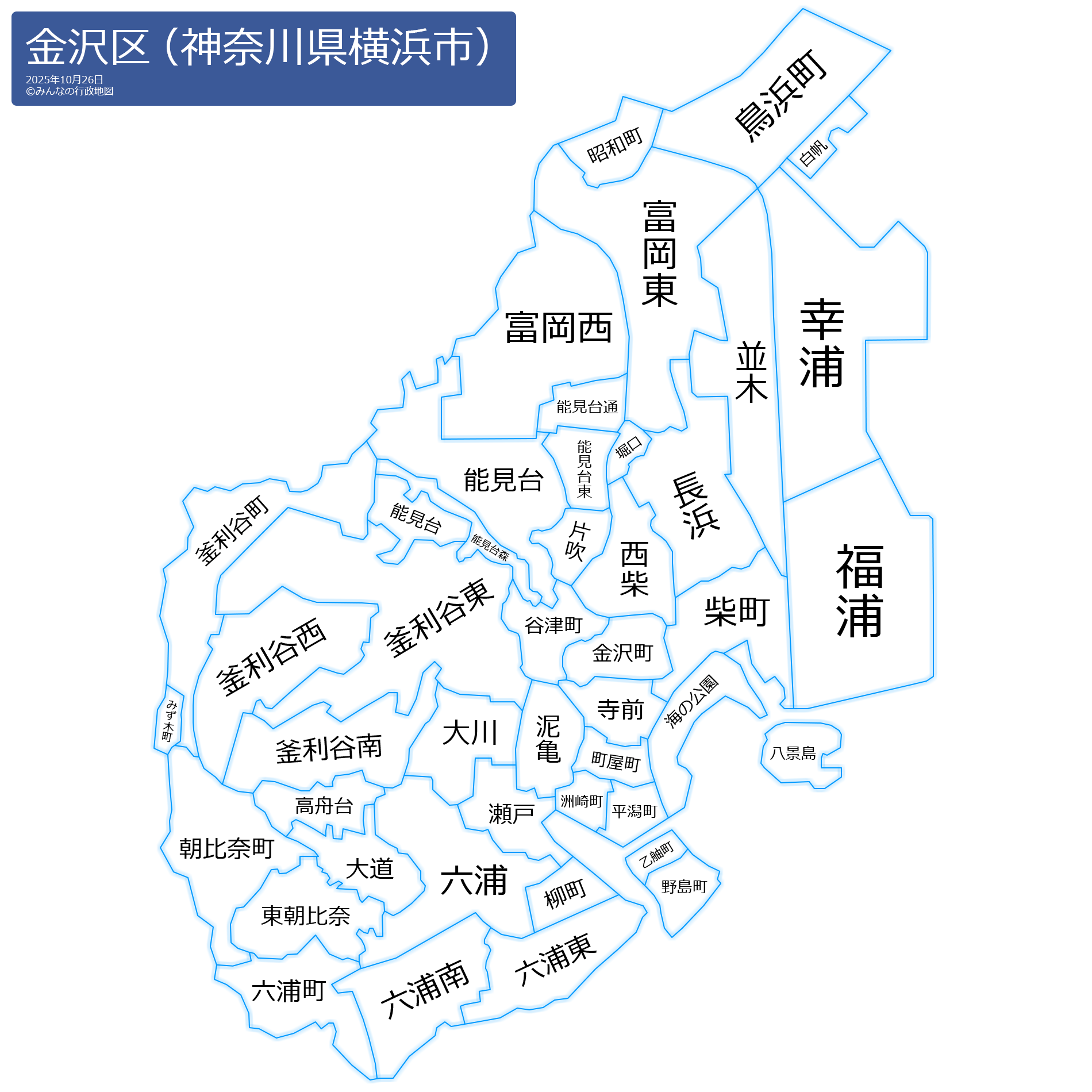 金沢区の地名と読み仮名