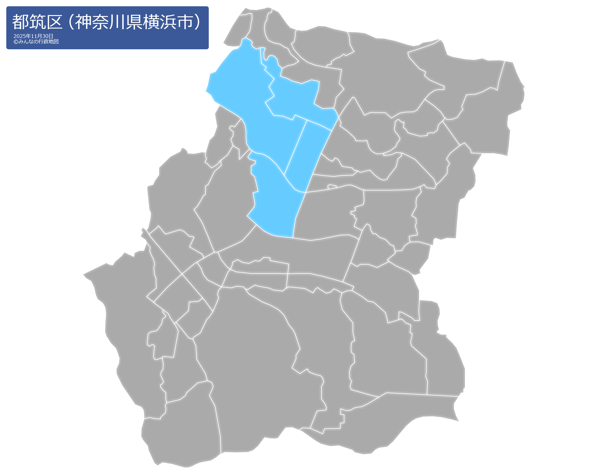 加賀原(かがはら)勝田町(かちだちょう)勝田南(かちだみなみ)川向町(かわむこうちょう)川和台(かわわだい)川和町(かわわちょう)北山田(きたやまた)葛が谷(くずがや)