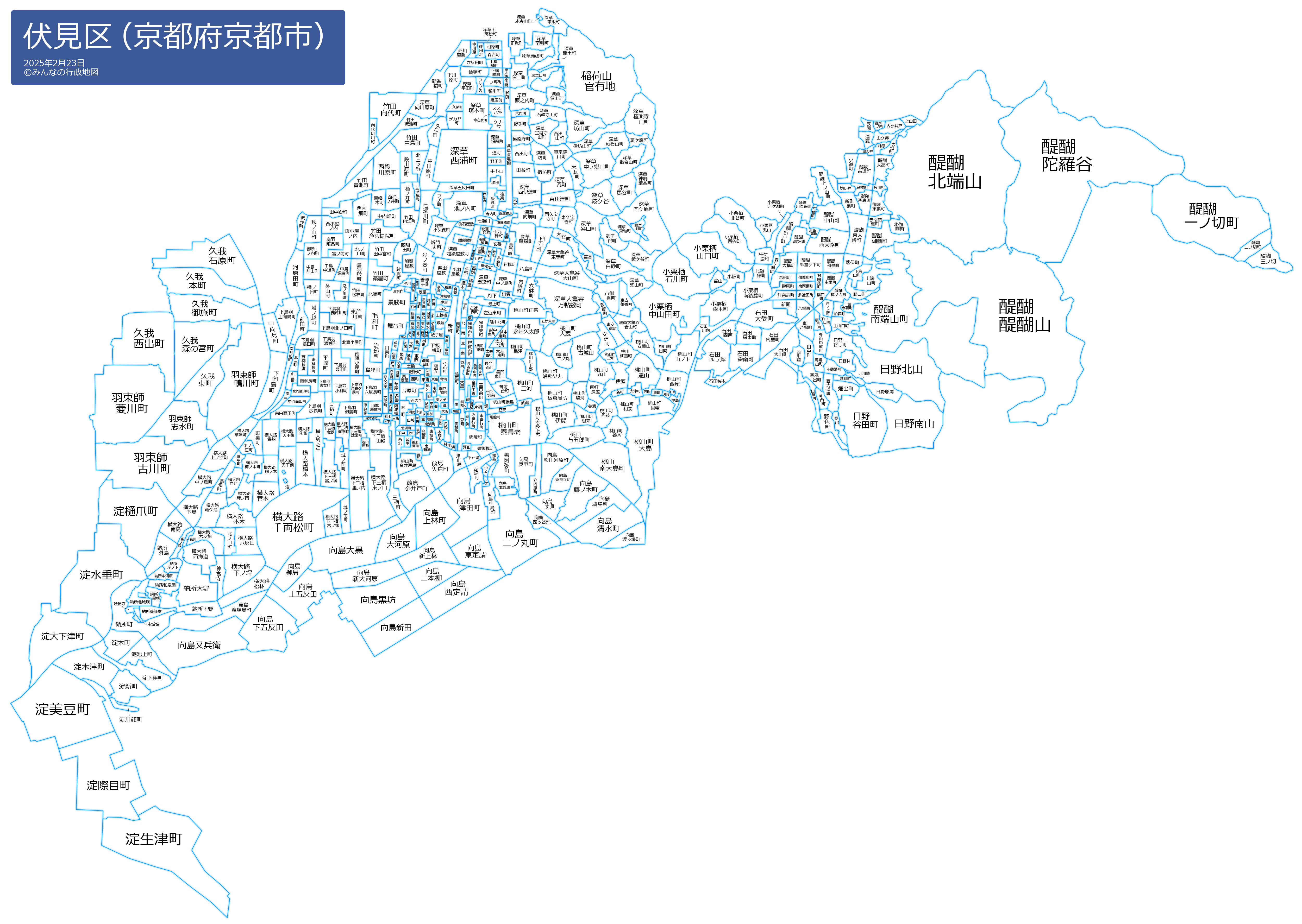 醍醐合場町(だいごあいばちょう)醍醐赤間南裏町(だいごあかまみなみうらちょう)醍醐池田町(だいごいけだちょう)醍醐和泉町(だいごいずみちょう)醍醐一言寺裏町(だいごいちごんじうらちょう)醍醐一ノ切町(だいごいちのきりちょう)醍醐上ノ山町(だいごうえのやまちょう)醍醐内ケ井戸(だいごうちがいど)醍醐江奈志町(だいごえなしちょう)醍醐大構町(だいごおおかまえちょう)醍醐大高町(だいごおおたかちょう)醍醐大畑町(だいごおおはたちょう)醍醐落保町(だいごおちぼちょう)醍醐折戸町(だいごおりどちょう)醍醐鍵尾町(だいごかぎおちょう)醍醐柿原町(だいごかきはらちょう)醍醐柏森町(だいごかしわもりちょう)醍醐片山町(だいごかたやまちょう)醍醐構口町(だいごかまえぐちちょう)醍醐上端山町(だいごかみはやまちょう)醍醐上山口町(だいごかみやまぐちちょう)醍醐上山田(だいごかみやまだ)醍醐烏橋町(だいごからすばしちょう)醍醐伽藍町(だいごがらんちょう)醍醐川久保町(だいごかわくぼちょう)醍醐岸ノ上町(だいごきしのうえちょう)醍醐北伽藍町(だいごきたがらんちょう)醍醐北西裏町(だいごきたにしうらちょう)醍醐北端山(だいごきたはやま)醍醐京道町(だいごきょうみちちょう)醍醐切レ戸町(だいごきれどちょう)醍醐御所ノ内(だいごごしょのうち)醍醐御霊ケ下町(だいごごりょうがしたちょう)醍醐御陵西裏町(だいごごりょうにしうらちょう)醍醐御陵東裏町(だいごごりょうひがしうらちょう)醍醐三ノ切(だいごさんのきり)醍醐下端山町(だいごしもはやまちょう)醍醐下山口町(だいごしもやまぐちちょう)醍醐勝口町(だいごしょうくちちょう)醍醐新開(だいごしんかい)醍醐新町裏町(だいごしんまちうらまち)醍醐外山街道町(だいごそとやまかいどうちょう)醍醐醍醐山(だいごだいごやま)醍醐高畑町(だいごたかはたちょう)醍醐多近田町(だいごたこんだちょう)醍醐辰巳町(だいごたつみちょう)醍醐陀羅谷(だいごだらたに)醍醐僧尊坊町(だいごどどんぼうちょう)醍醐中山町(だいごなかやまちょう)醍醐西大路町(だいごにしおおじちょう)醍醐二ノ切町(だいごにのきりちょう)醍醐狭間(だいごはざま)醍醐東合場町(だいごひがしあいばちょう)醍醐東大路町(だいごひがしおおじちょう)醍醐平松町(だいごひらまつちょう)醍醐古道町(だいごふるみちちょう)醍醐槇ノ内町(だいごまきのうちちょう)醍醐廻り戸町(だいごまわりどちょう)醍醐御園尾町(だいごみそのおちょう)醍醐南里町(だいごみなみさとちょう)醍醐南西裏町(だいごみなみにしうらちょう)醍醐南端山町(だいごみなみはやまちょう)醍醐山ケ鼻(だいごやまがはな)醍醐連蔵(だいごれんぞう)鷹匠町(たかじょうちょう)竹田青池町(たけだあおいけちょう)竹田内畑町(たけだうちはたちょう)竹田桶ノ井町(たけだおけのいちょう)竹田狩賀町(たけだかるがちょう)竹田北三ツ杭町(たけだきたみつぐいちょう)竹田久保町(たけだくぼちょう)竹田浄菩提院町(たけだじょうぼだいいんちょう)竹田醍醐田町(たけだだいごでんちょう)竹田田中殿町(たけだたなかでんちょう)竹田田中宮町(たけだたなかみやちょう)竹田段川原町(たけだだんがわらちょう)竹田鳥羽殿町(たけだとばどのちょう)竹田中内畑町(たけだなかうちはたちょう)竹田中川原町(たけだなかがわらちょう)竹田中島町(たけだなかじまちょう)竹田七瀬川町(たけだななせがわちょう)竹田西内畑町(たけだにしうちはたちょう)竹田西桶ノ井町(たけだにしおけのいちょう)竹田西小屋ノ内町(たけだにしこやのうちちょう)竹田西段川原町(たけだにしだんがわらちょう)竹田東小屋ノ内町(たけだひがしこやのうちちょう)竹田泓ノ川町(たけだふけのがわちょう)竹田松林町(たけだまつばやしちょう)竹田真幡木町(たけだまはたぎちょう)竹田三ツ杭町(たけだみつぐいちょう)竹田向代町(たけだむかいしろちょう)竹田向代町川町(たけだむかいしろちょうかわまち)竹田流池町(たけだりゅうちちょう)竹田藁屋町(たけだわらやちょう)竹中町(たけなかちょう)樽屋町(たるやちょう)丹後町(たんごちょう)弾正町(だんじょうちょう)丹波橋町(たんばばしちょう)津知橋町(つちばしちょう)問屋町(といやまち)道阿弥町(どうあみちょう)等安町(とうあんちょう)桃陵町(とうりょうちょう)常盤町(ときわちょう)土橋町(どばしちょう)鳥羽町(とばまち)