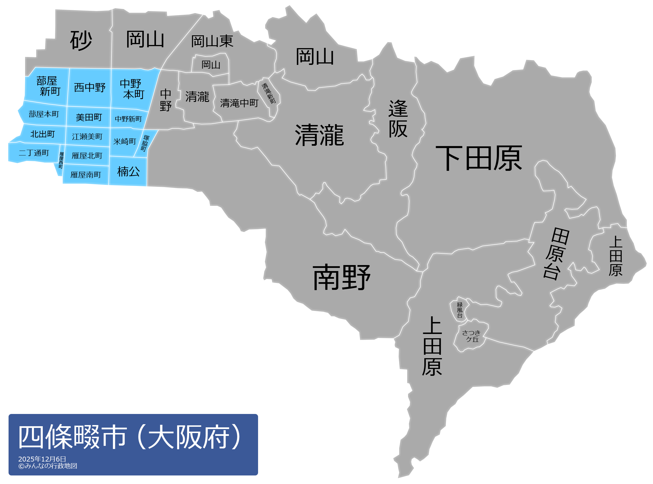 四條畷市の地名と読み仮名
