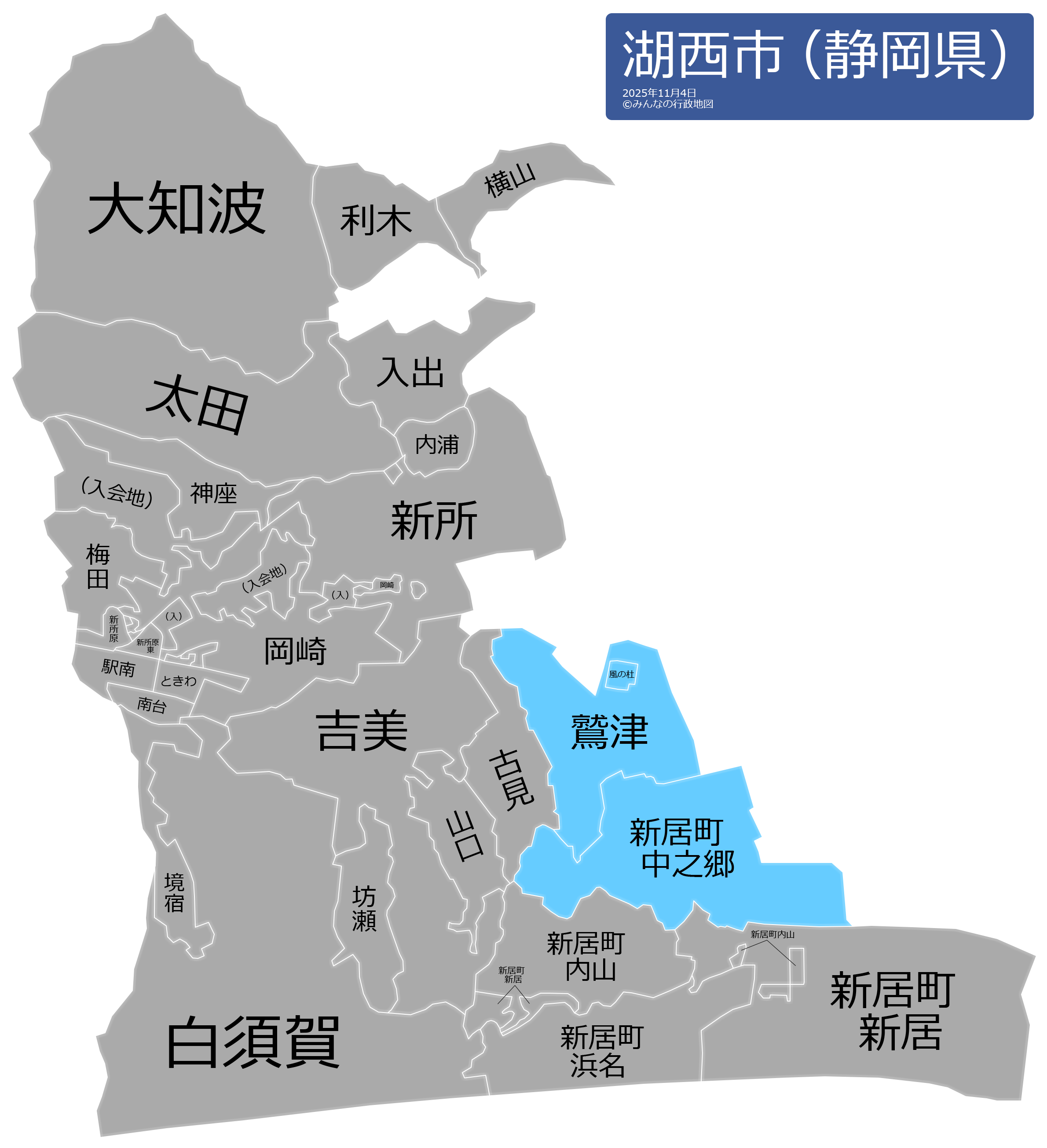 湖西市の地名と読み仮名