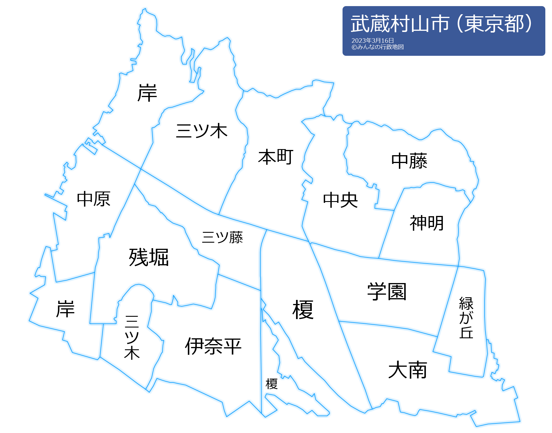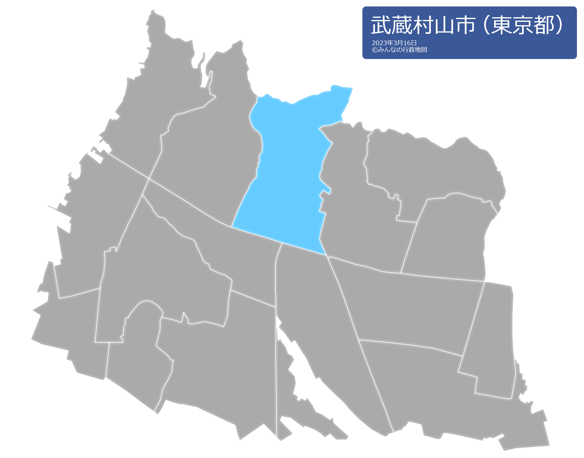 この武蔵村山市の行政地図は、