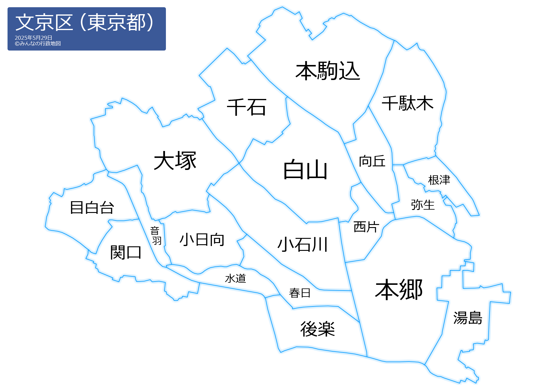 この文京区の行政地図は、