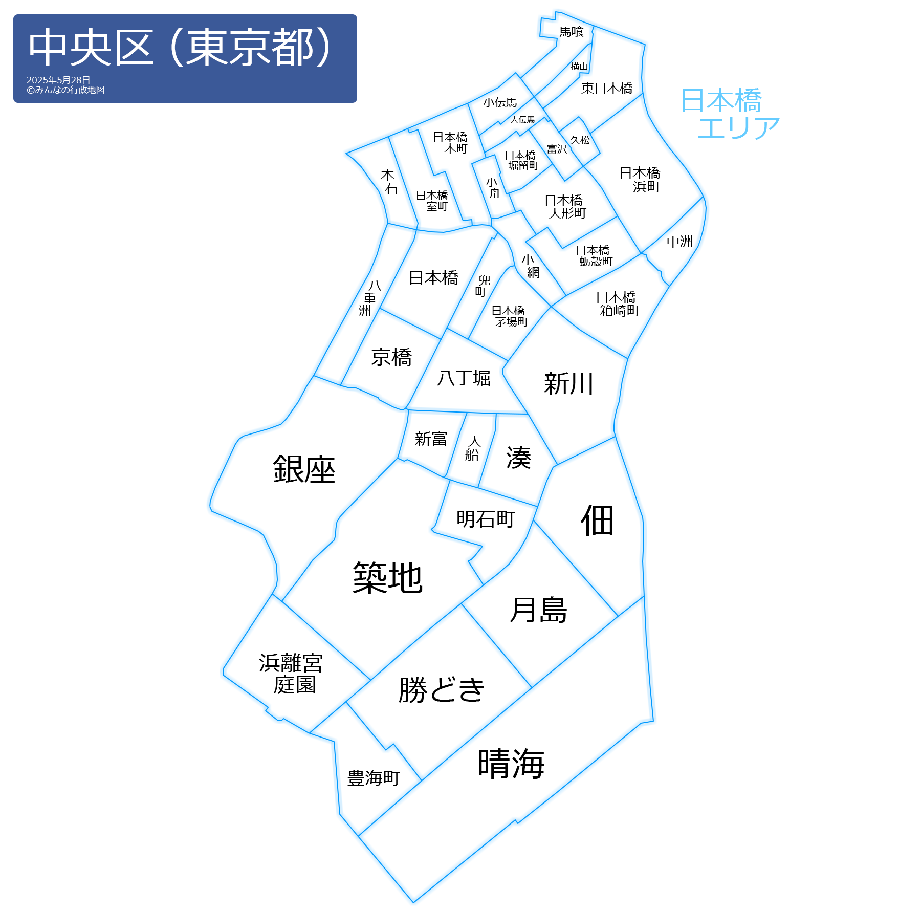 中央区の地名と読み仮名