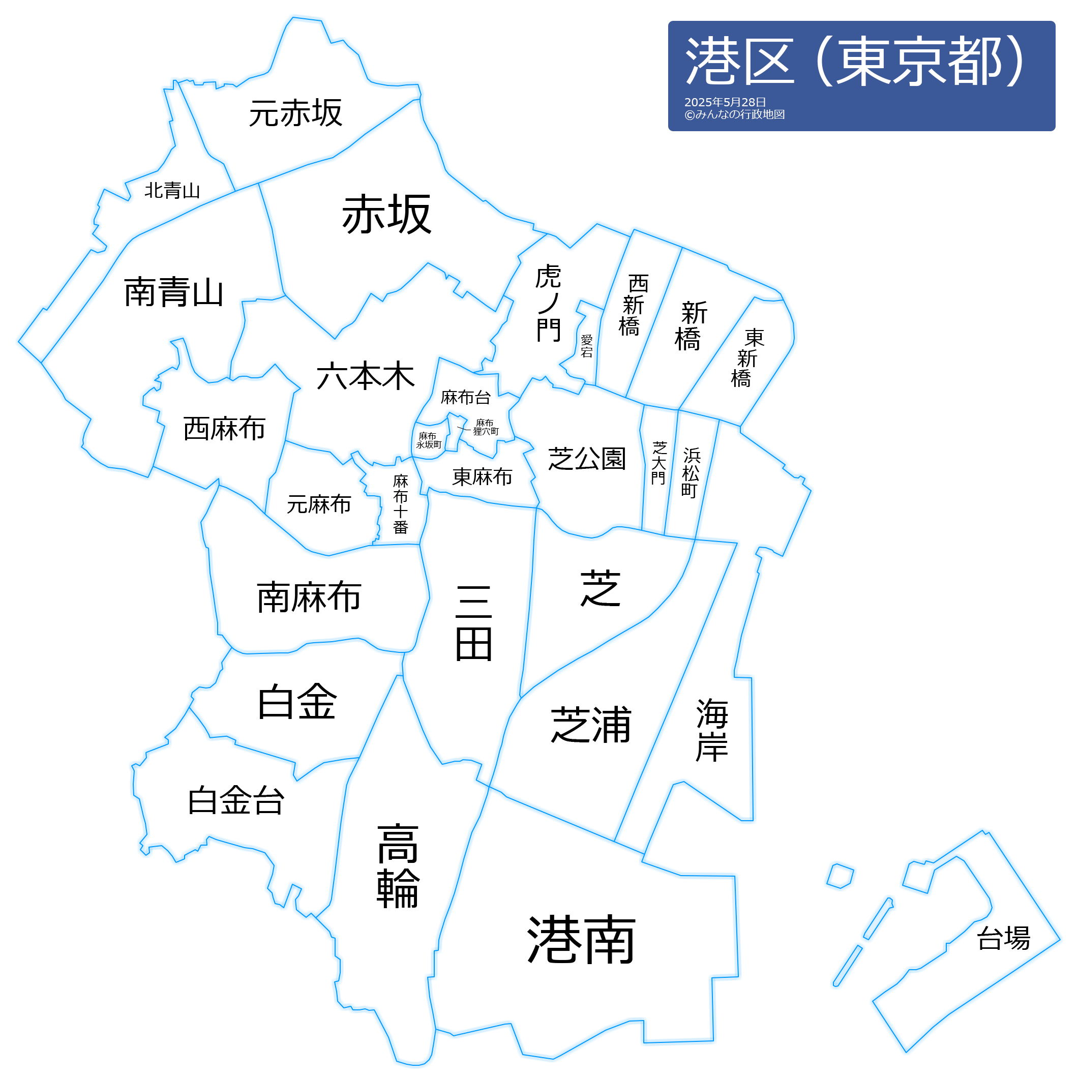 三田(みた)南青山(みなみあおやま)南麻布(みなみあざぶ)元赤坂(もとあかさか)元麻布(もとあざぶ)