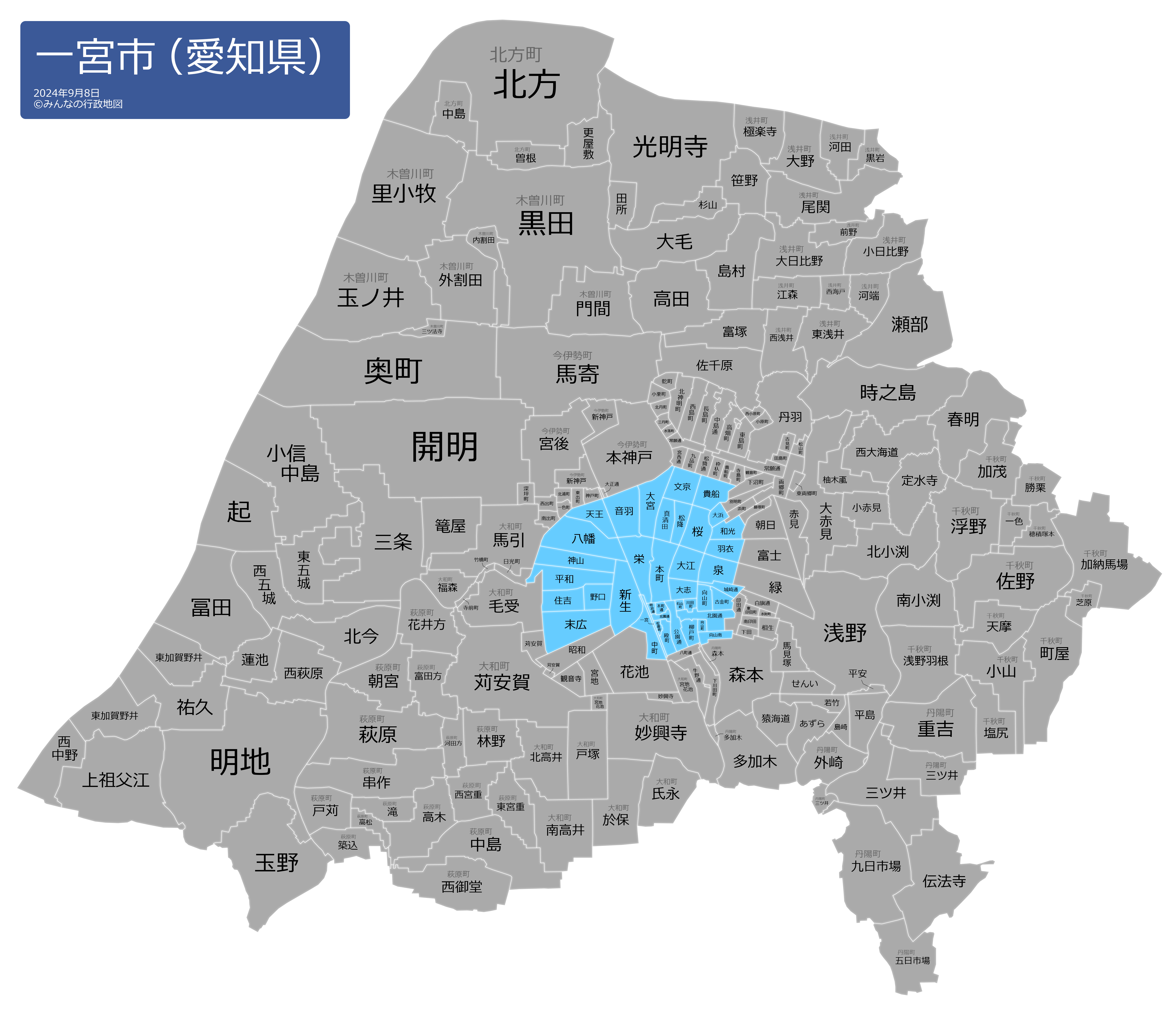 一宮市の地名と読み仮名