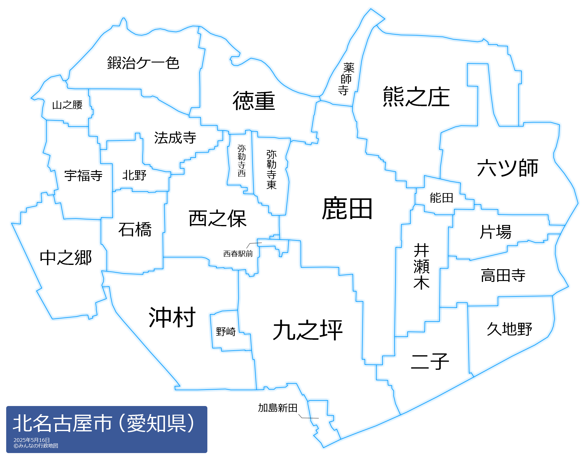 中之郷(なかのごう)西之保(にしのほう)西春駅前(にしはるえきまえ)能田(のうだ)野崎(のざき)