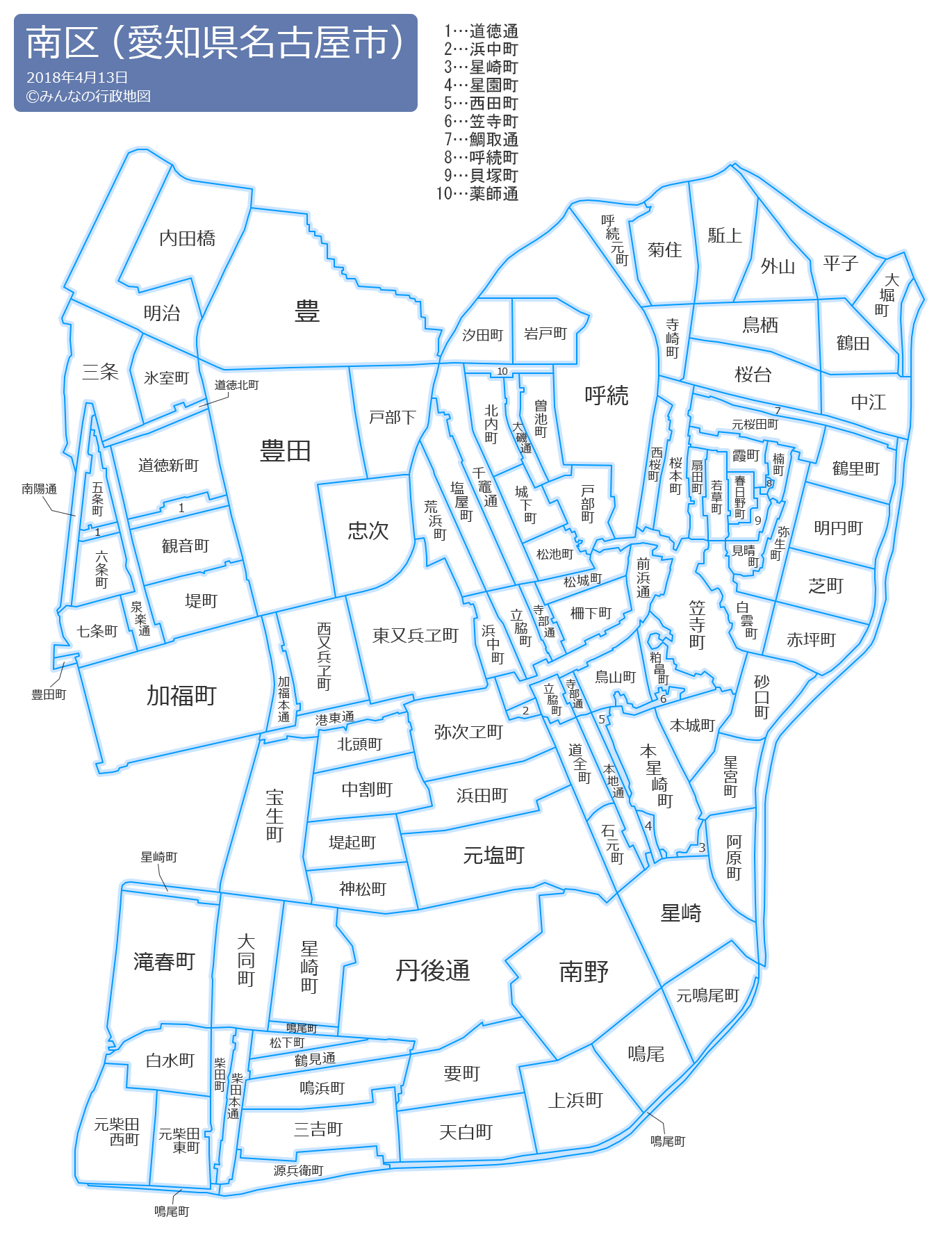 貝塚町(かいづかちょう)駈上(かけあげ)笠寺町(かさでらちょう)春日野町(かすがのちょう)粕畠町(かすばたちょう)霞町(かすみちょう)要町(かなめちょう)加福町(かふくちょう)加福本通(かふくほんとおり)上浜町(かみはまちょう)神松町(かみまつちょう)観音町(かんのんちょう)菊住(きくすみ)北内町(きたうちちょう)北頭町(きたがしらちょう)楠町(くすのきちょう)源兵衛町(げんべえちょう)港東通(こうとうどおり)五条町(ごじょうちょう)
