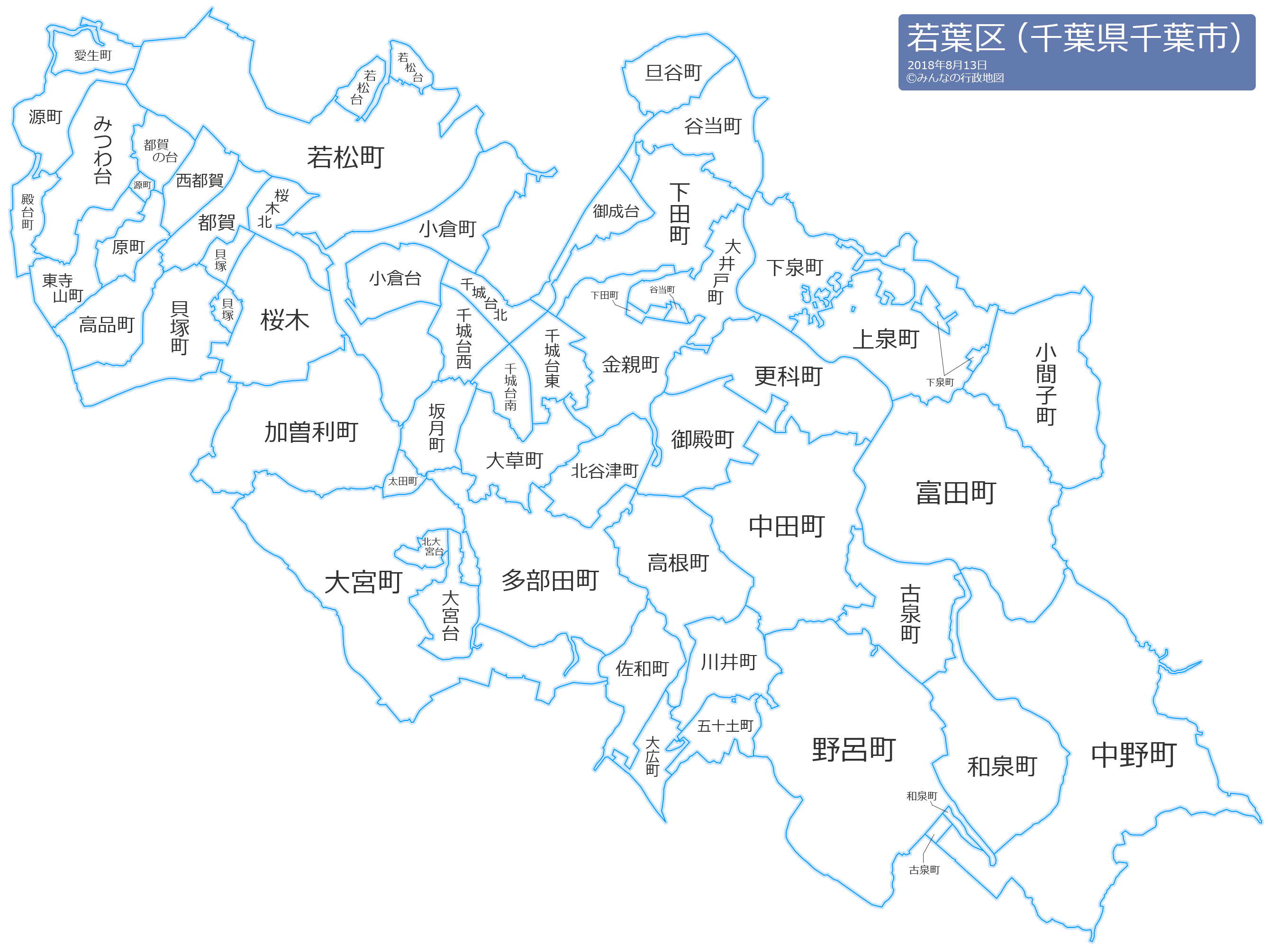 若葉区の地名と読み仮名