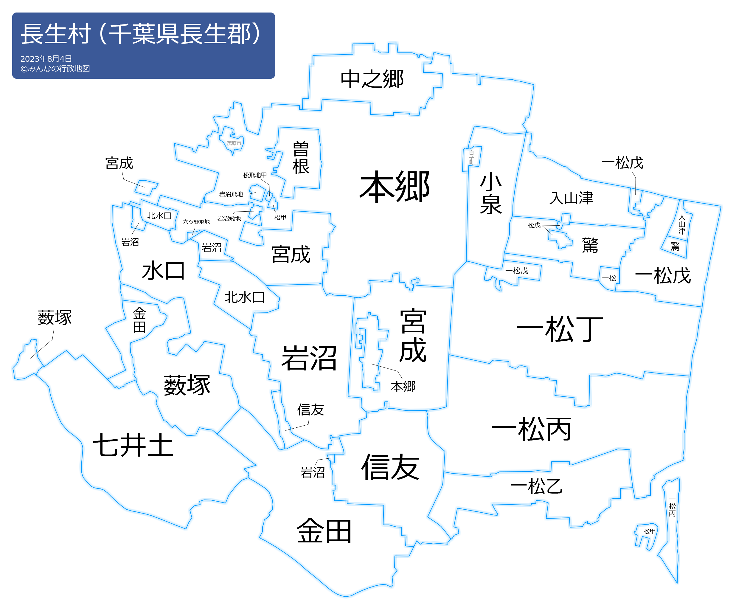 長生村の地名と読み仮名