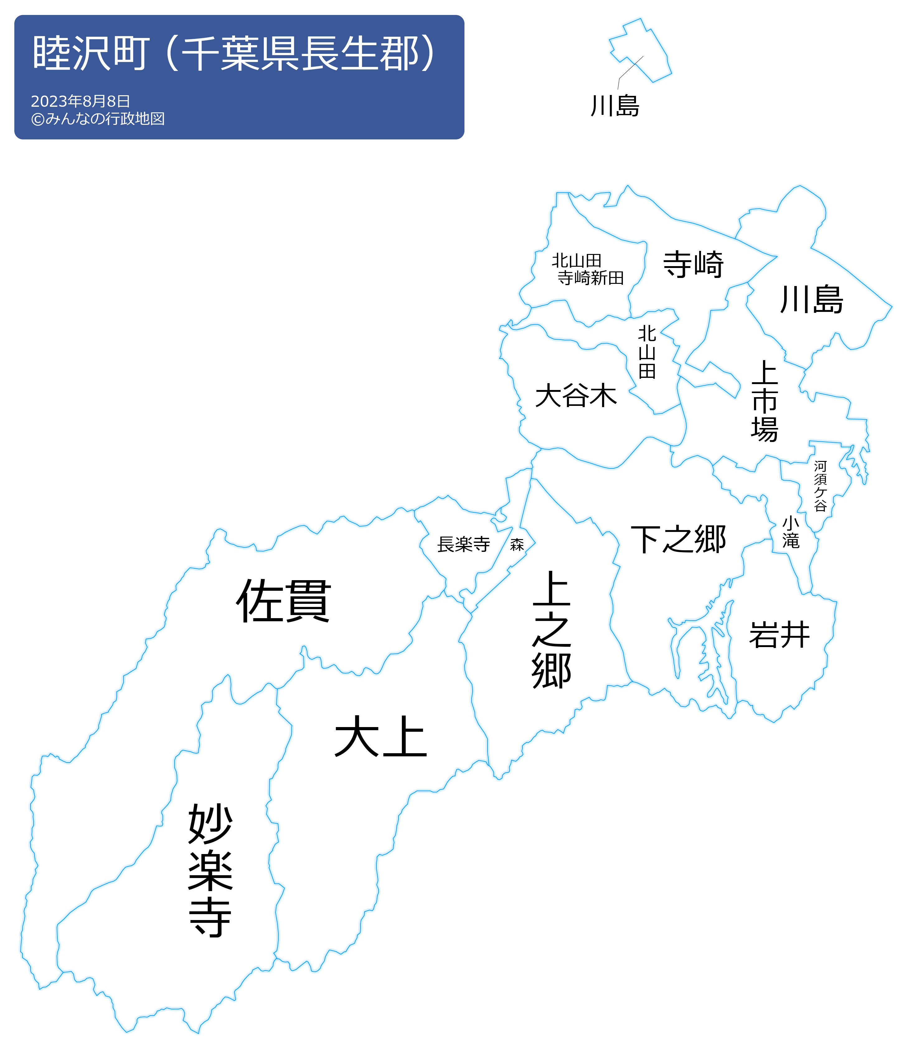 この睦沢町の行政地図は、