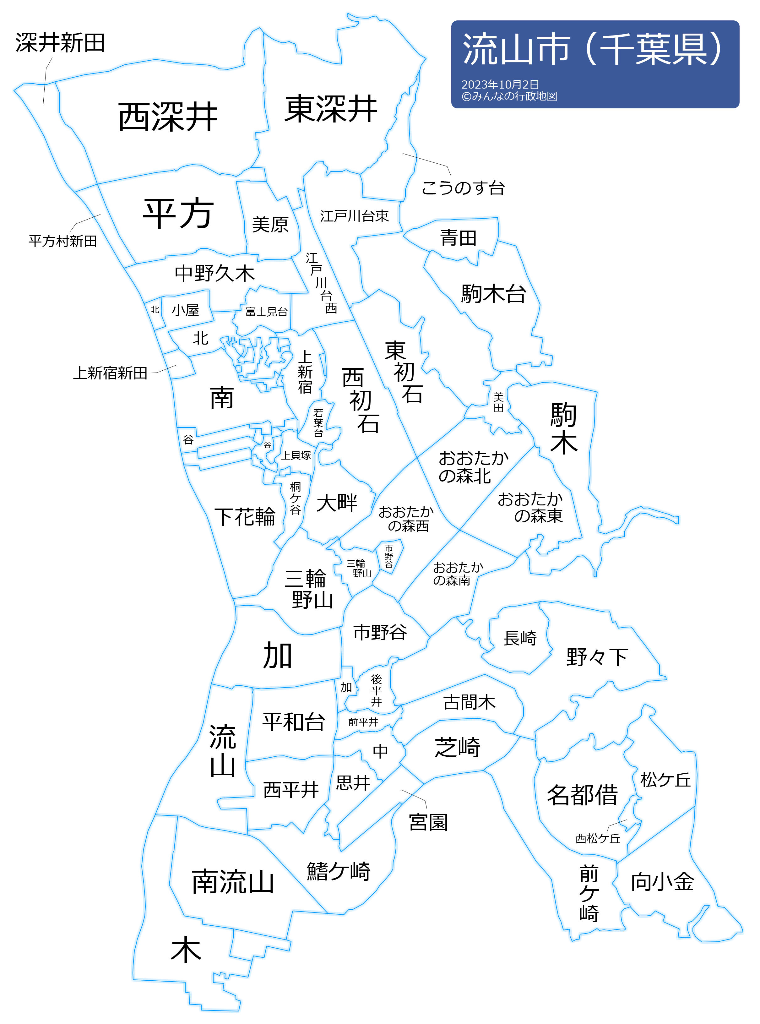 流山市の地名と読み仮名