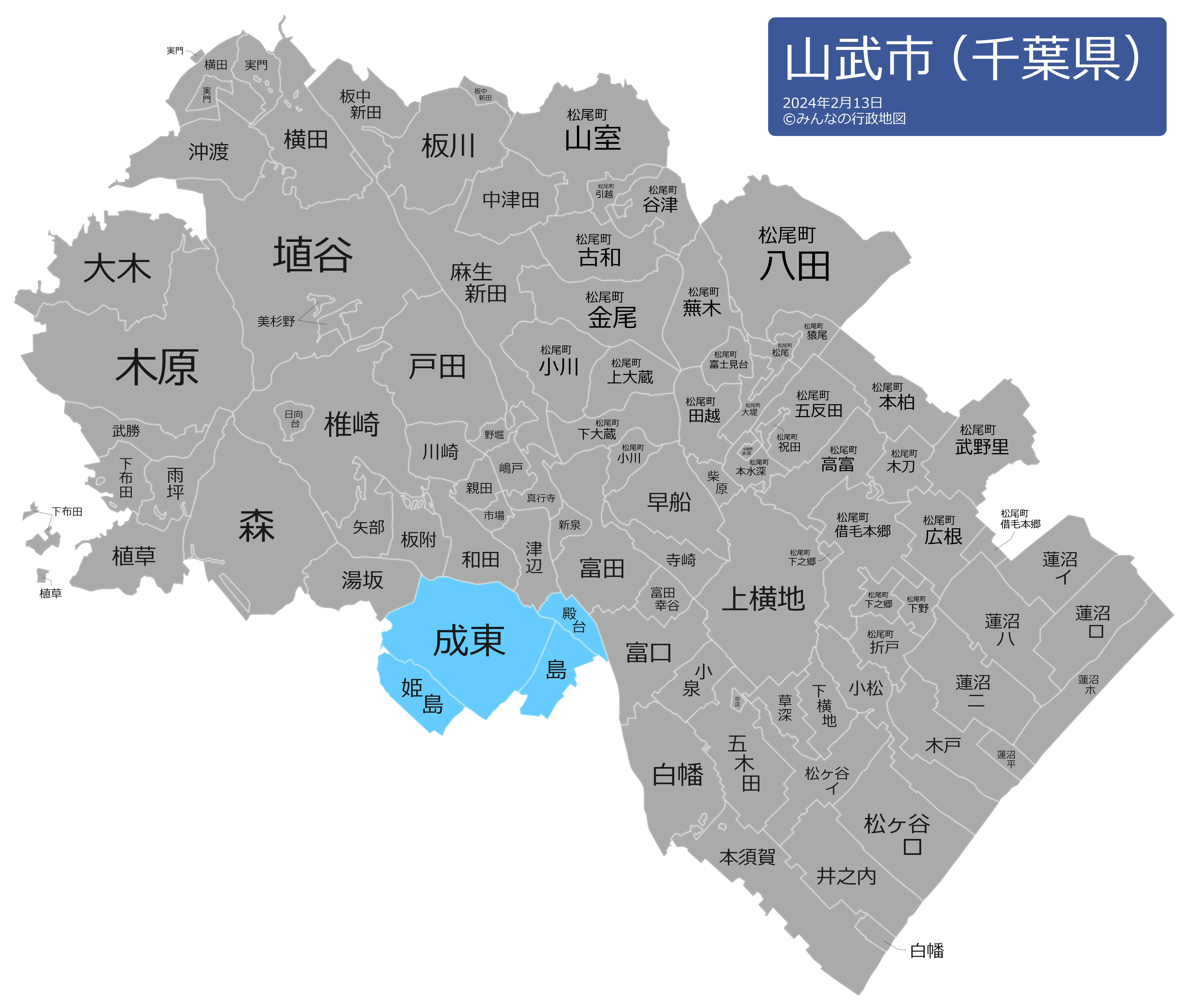 山武市の地名と読み仮名