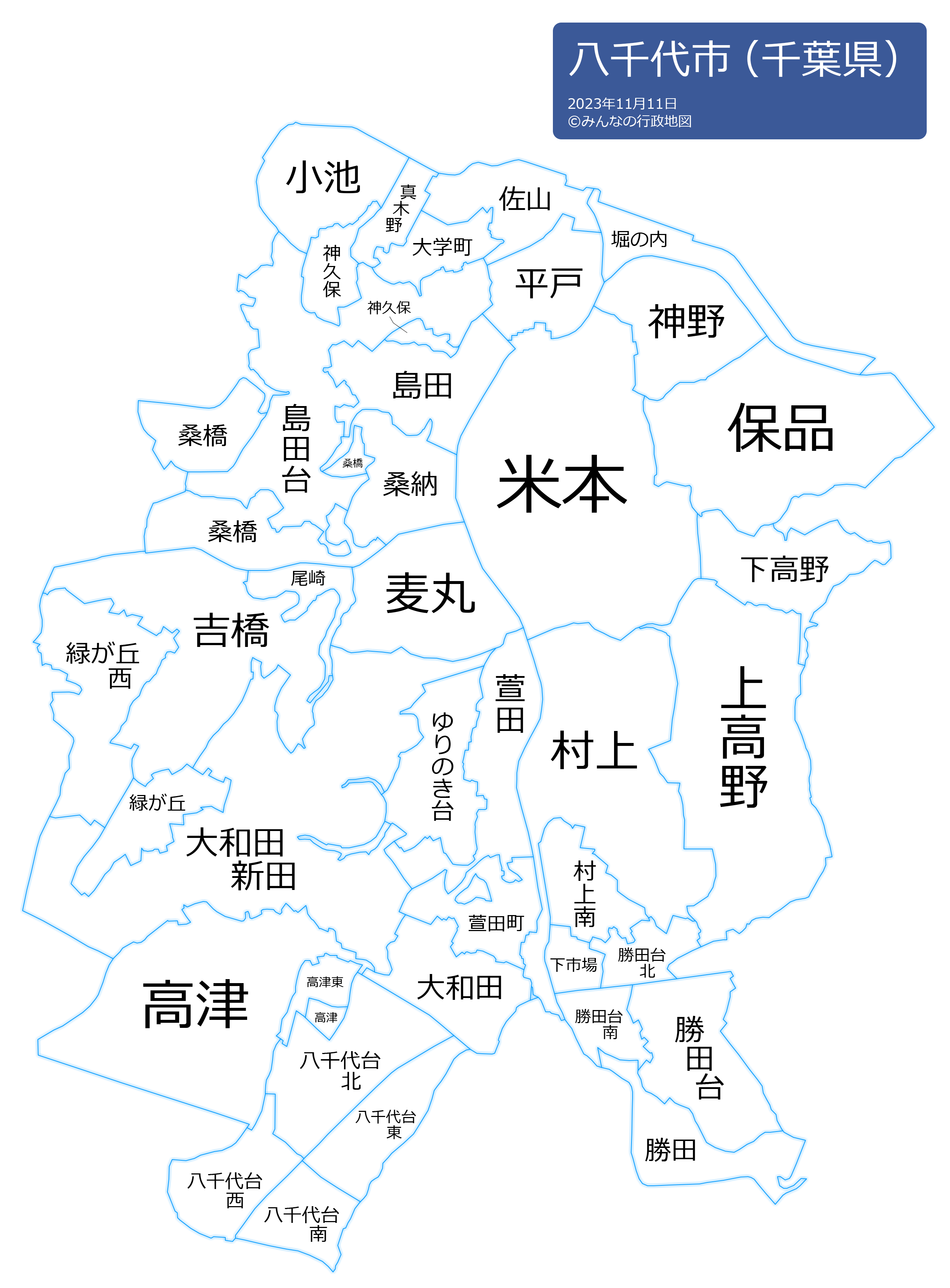 八千代市の地名と読み仮名
