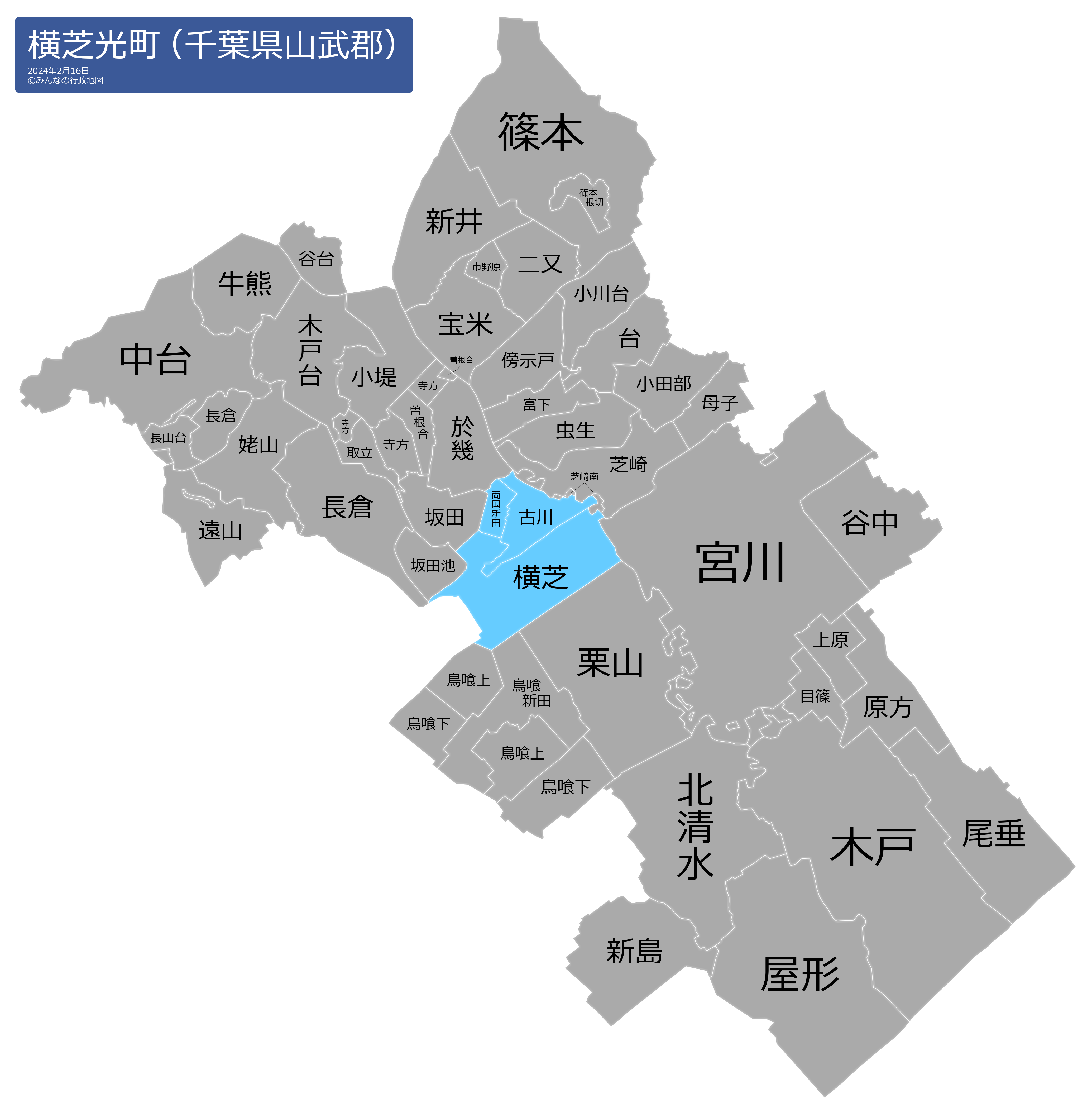 横芝光町の地名と読み仮名