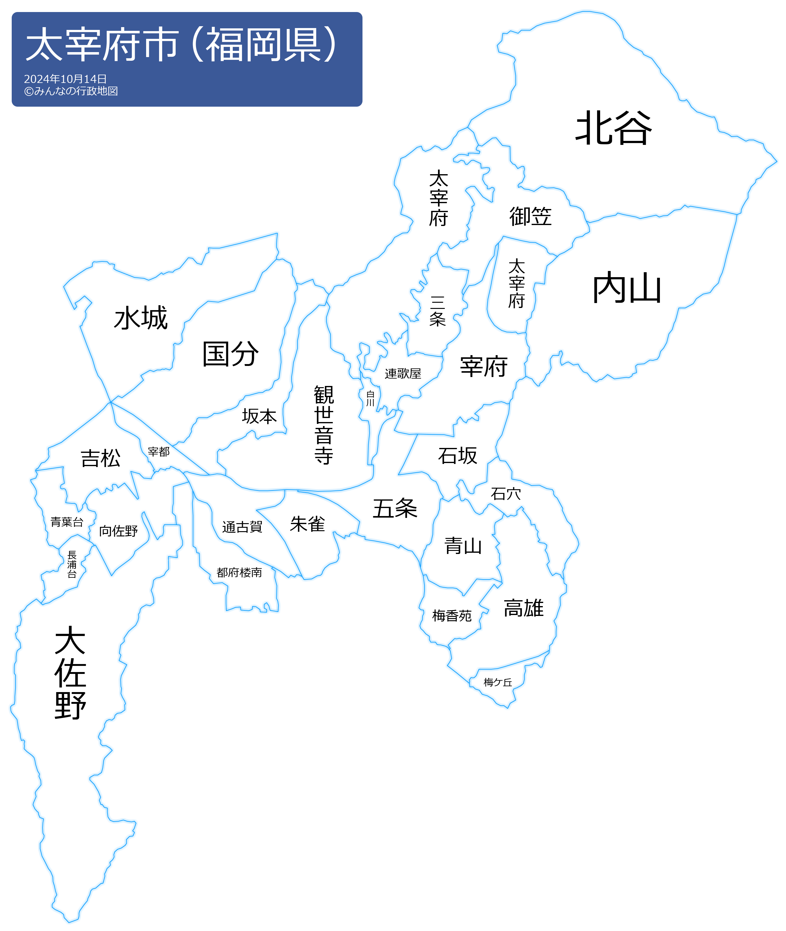 高雄(たかお)太宰府(だざいふ)通古賀(とおのこが)都府楼南(とふろうみなみ)
