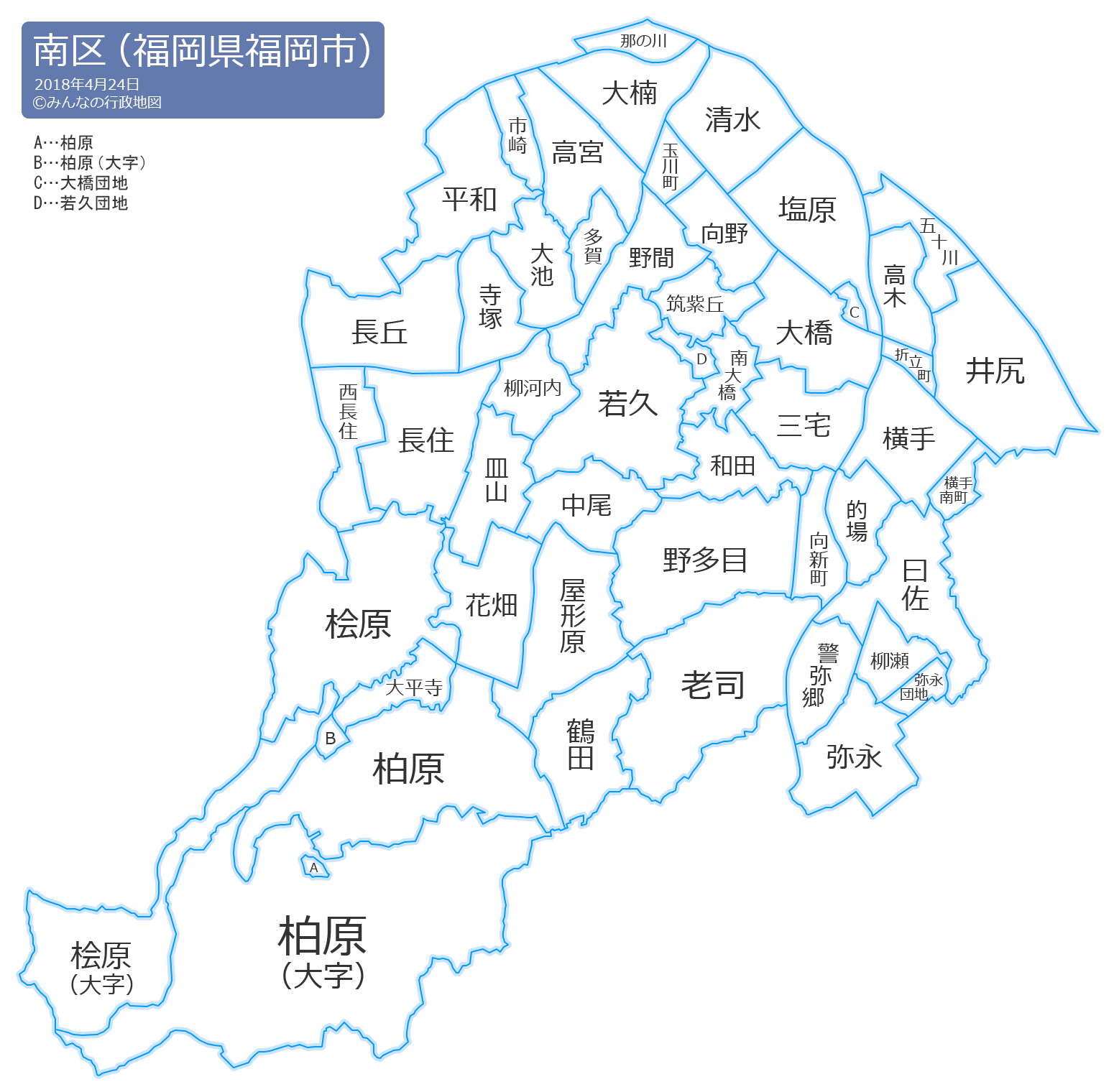 井尻(いじり)市崎(いちざき)大池(おおいけ)大楠(おおぐす)大橋(おおはし)大橋団地(おおはしだんち)曰佐(おさ)折立町(おりたてまち)