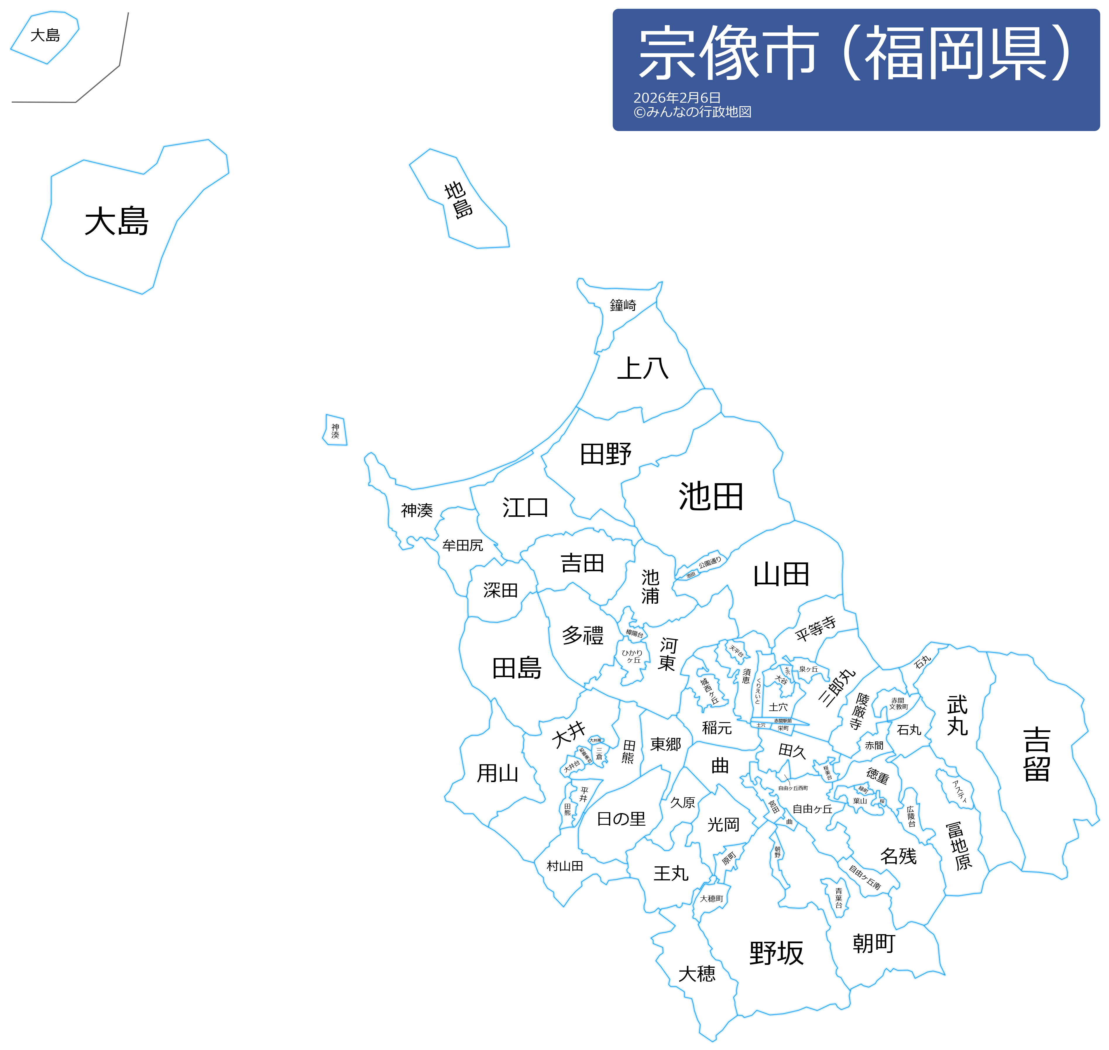 宗像市の地名と読み仮名
