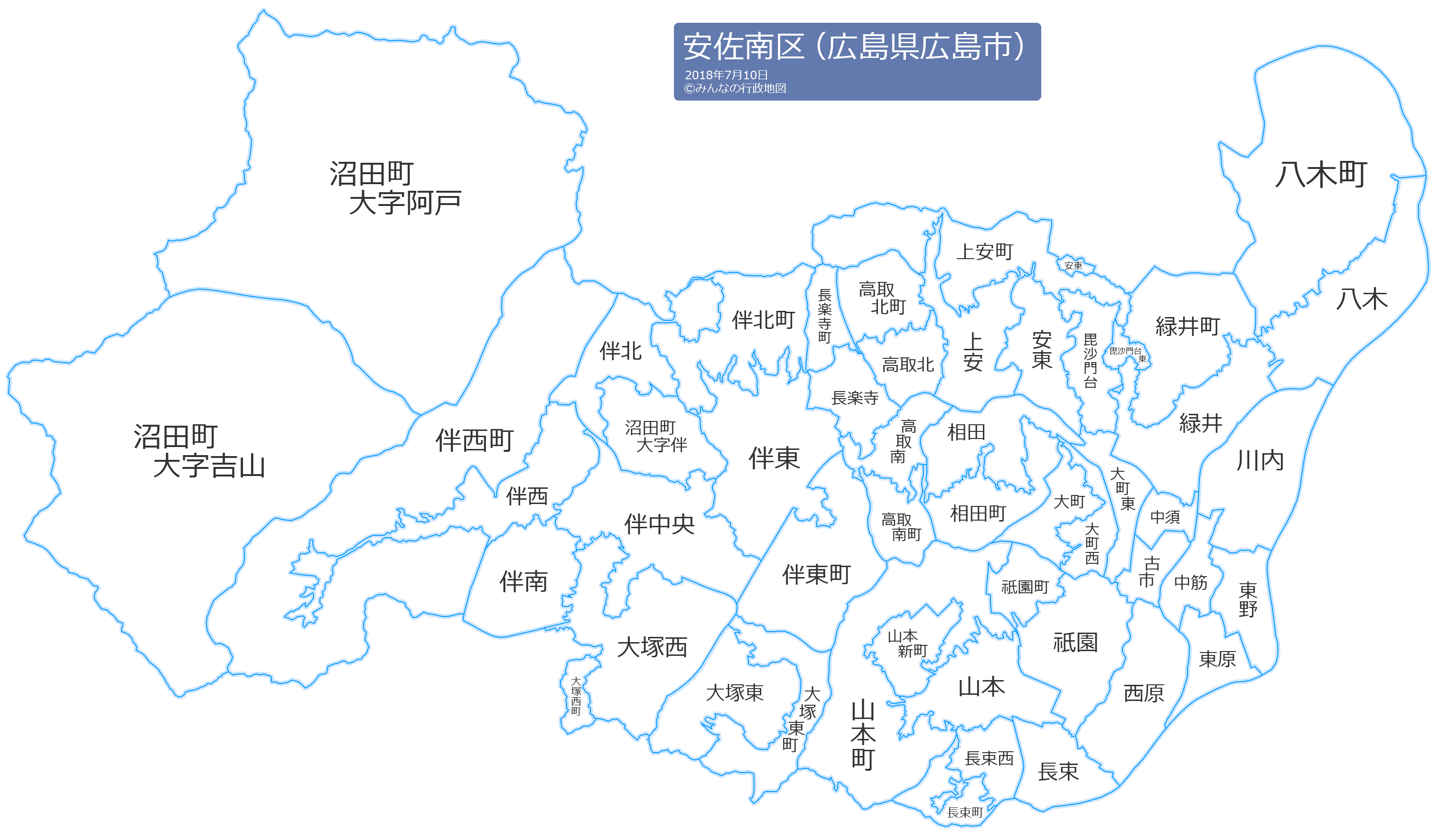 安佐南区の地名と読み仮名