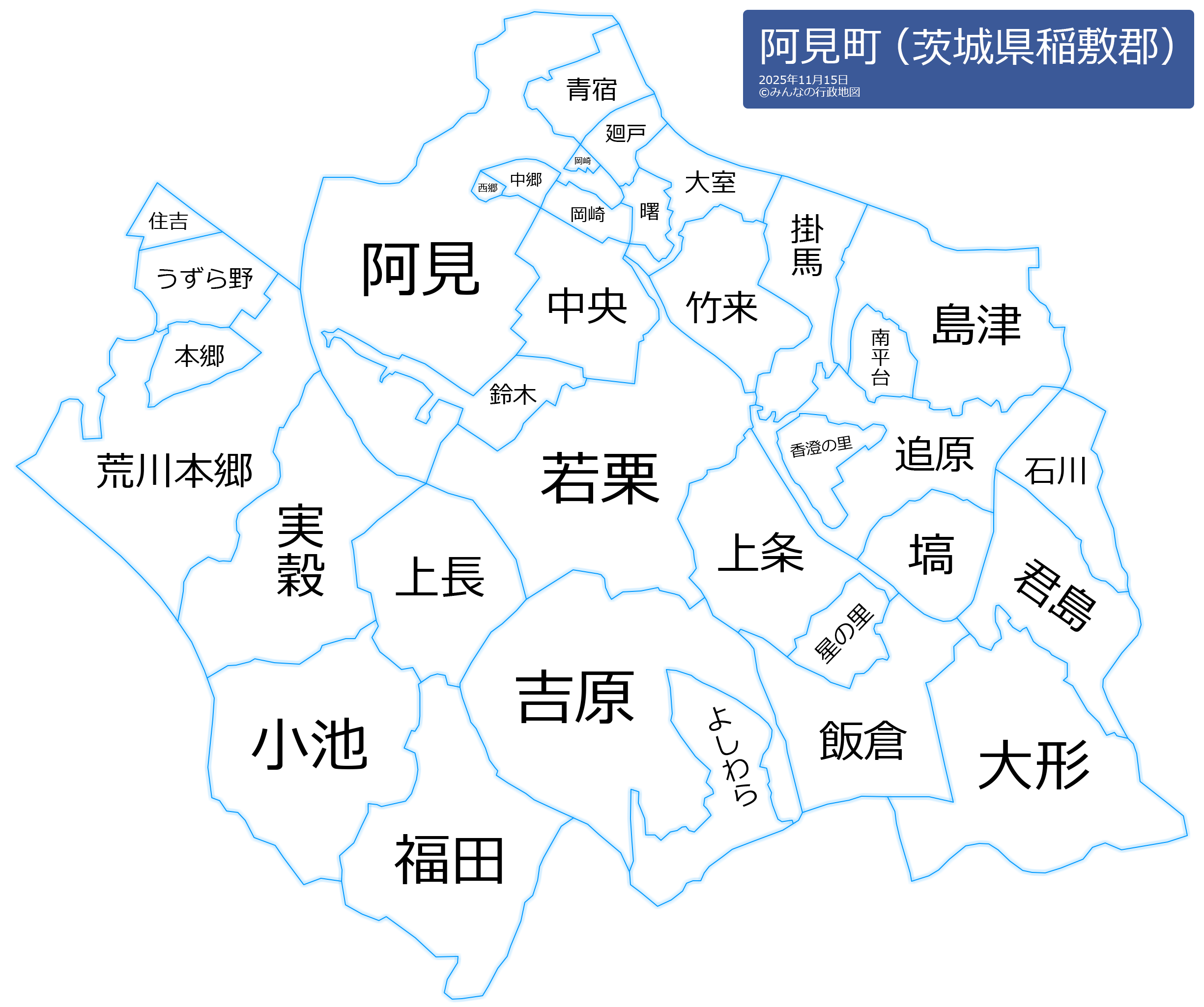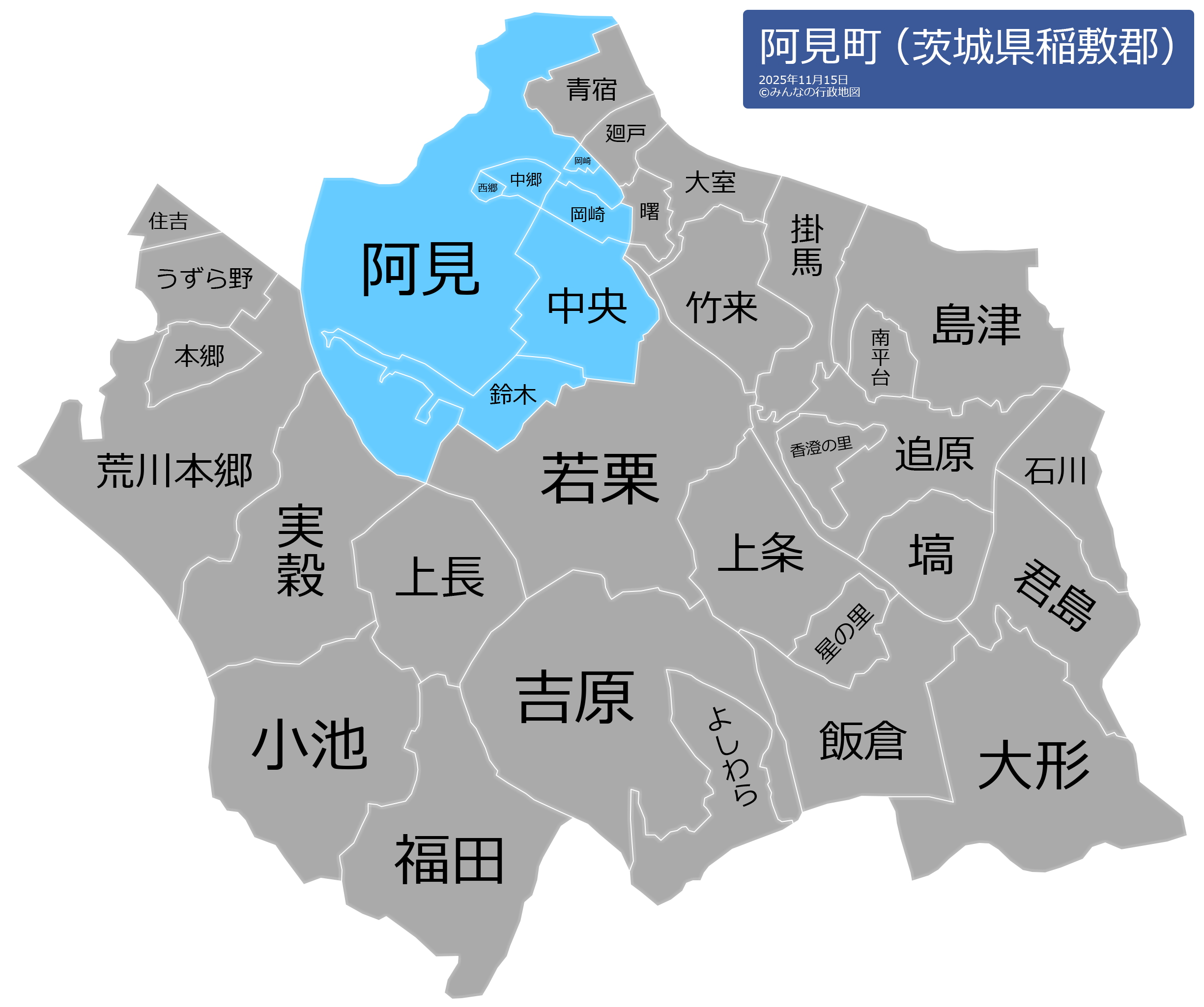 阿見町の地名と読み仮名