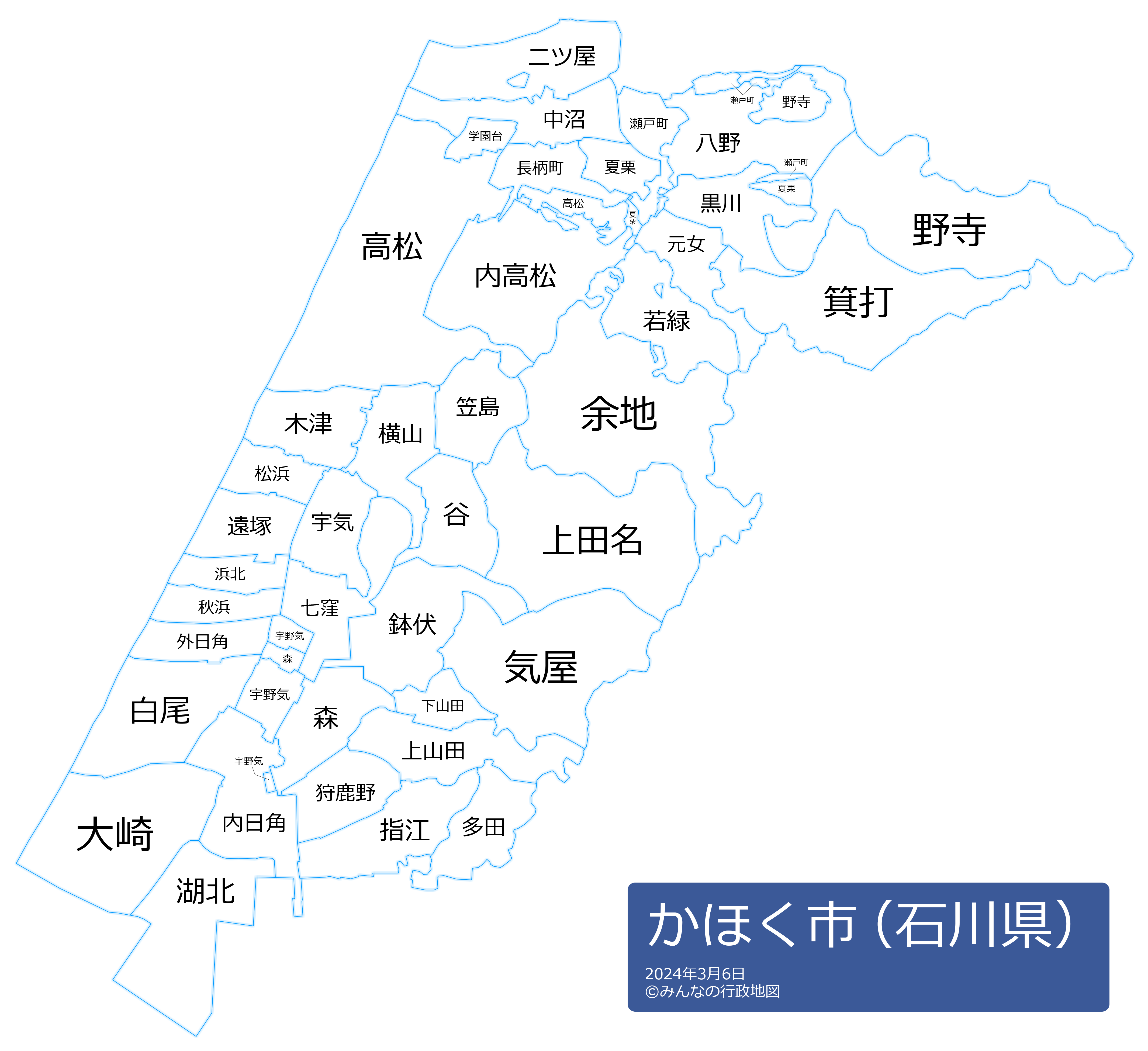かほく市の地名と読み仮名