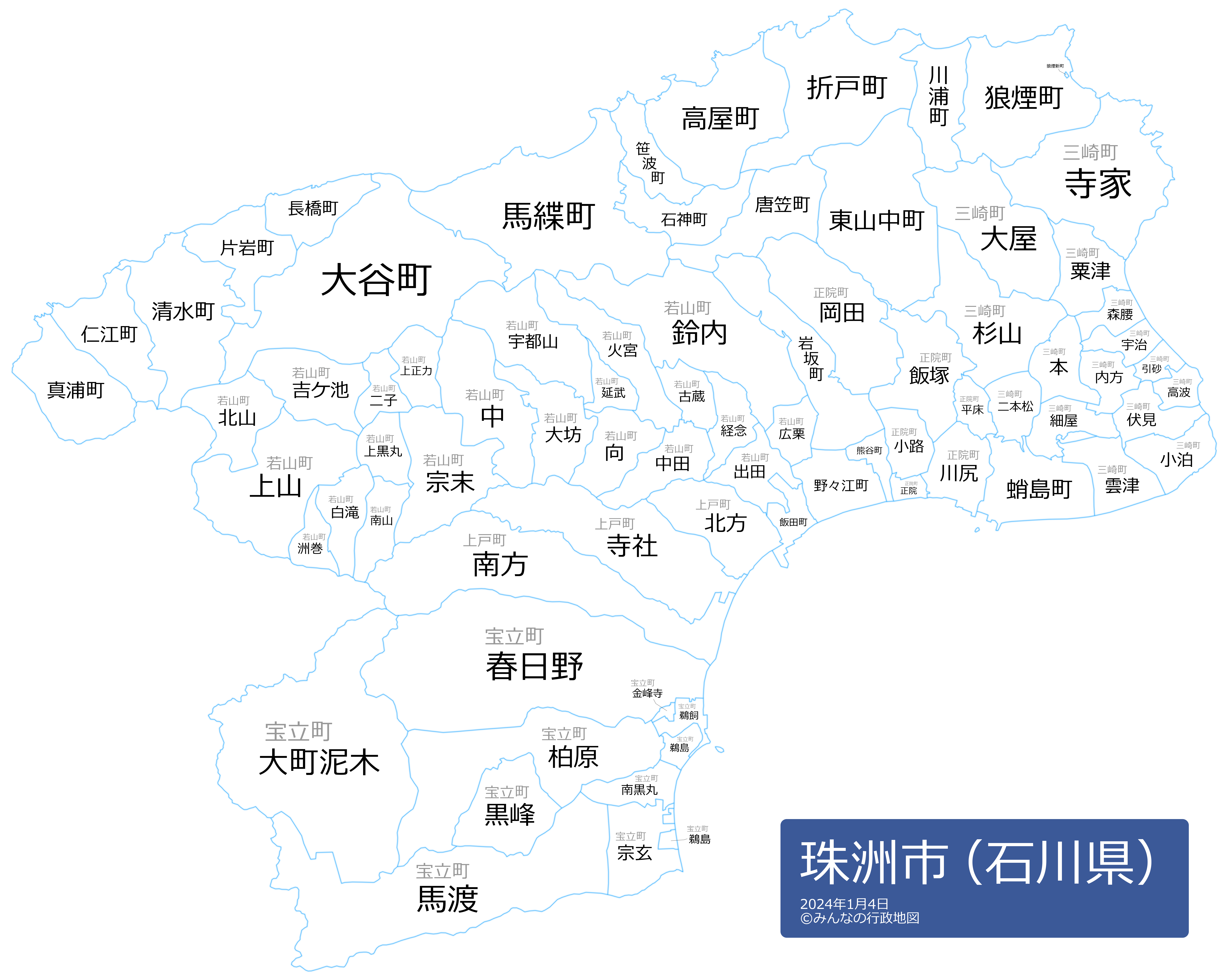 珠洲市の地名と読み仮名