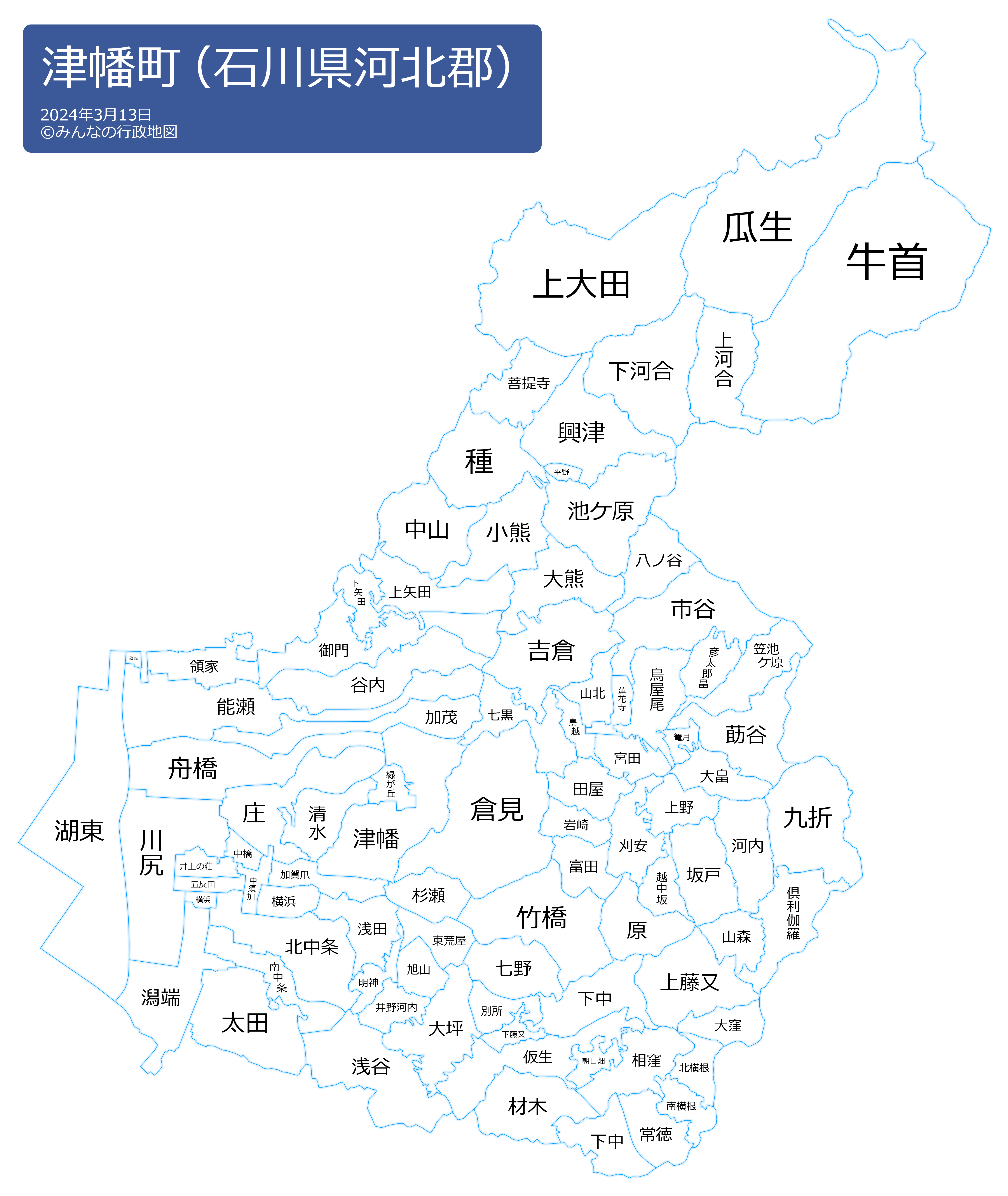 竹橋(たけのはし)種(たね)田屋(たや)九折(つづらおり)津幡(つばた)富田(とみた)鳥越(とりごえ)鳥屋尾(とりやお)