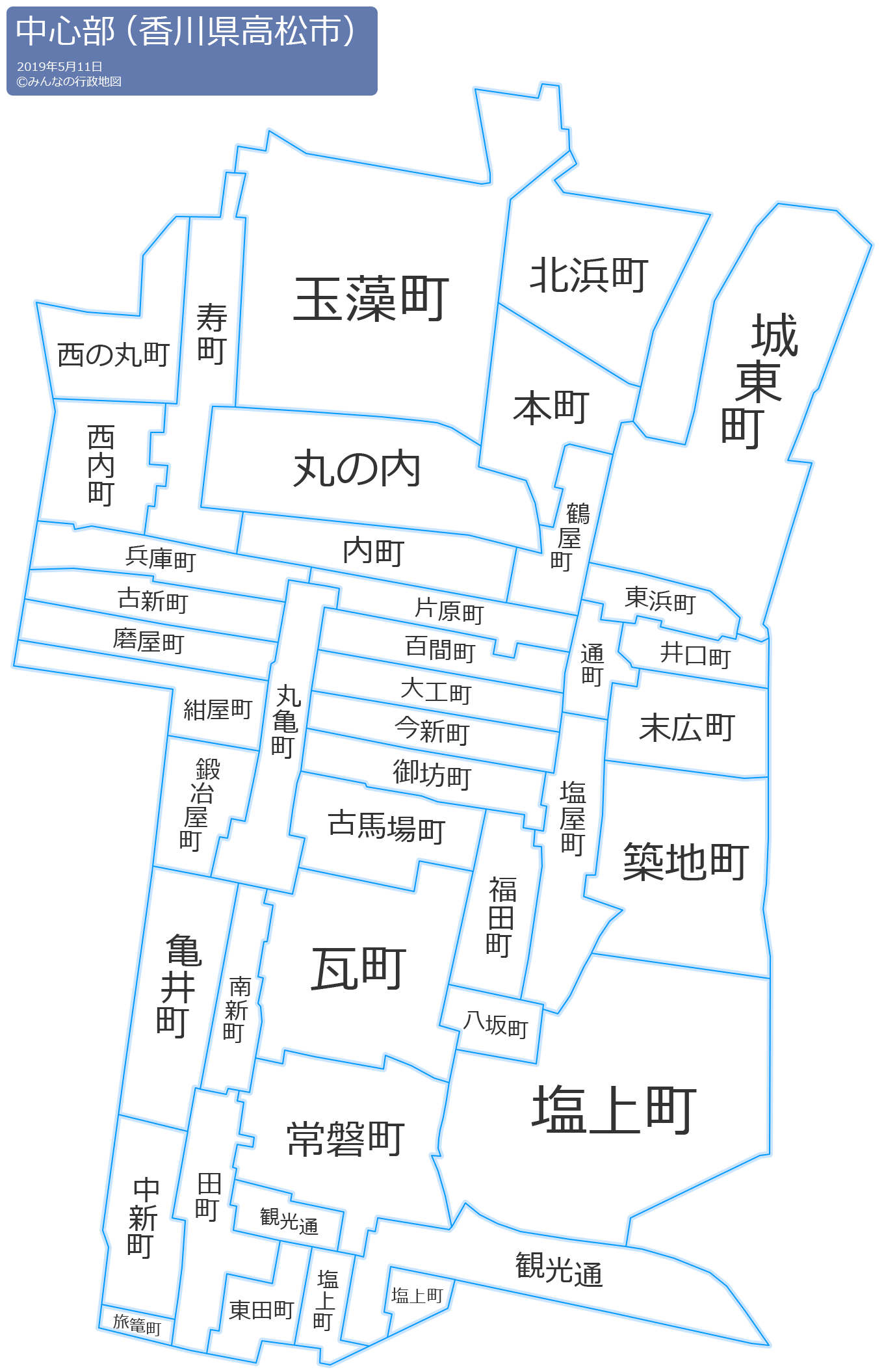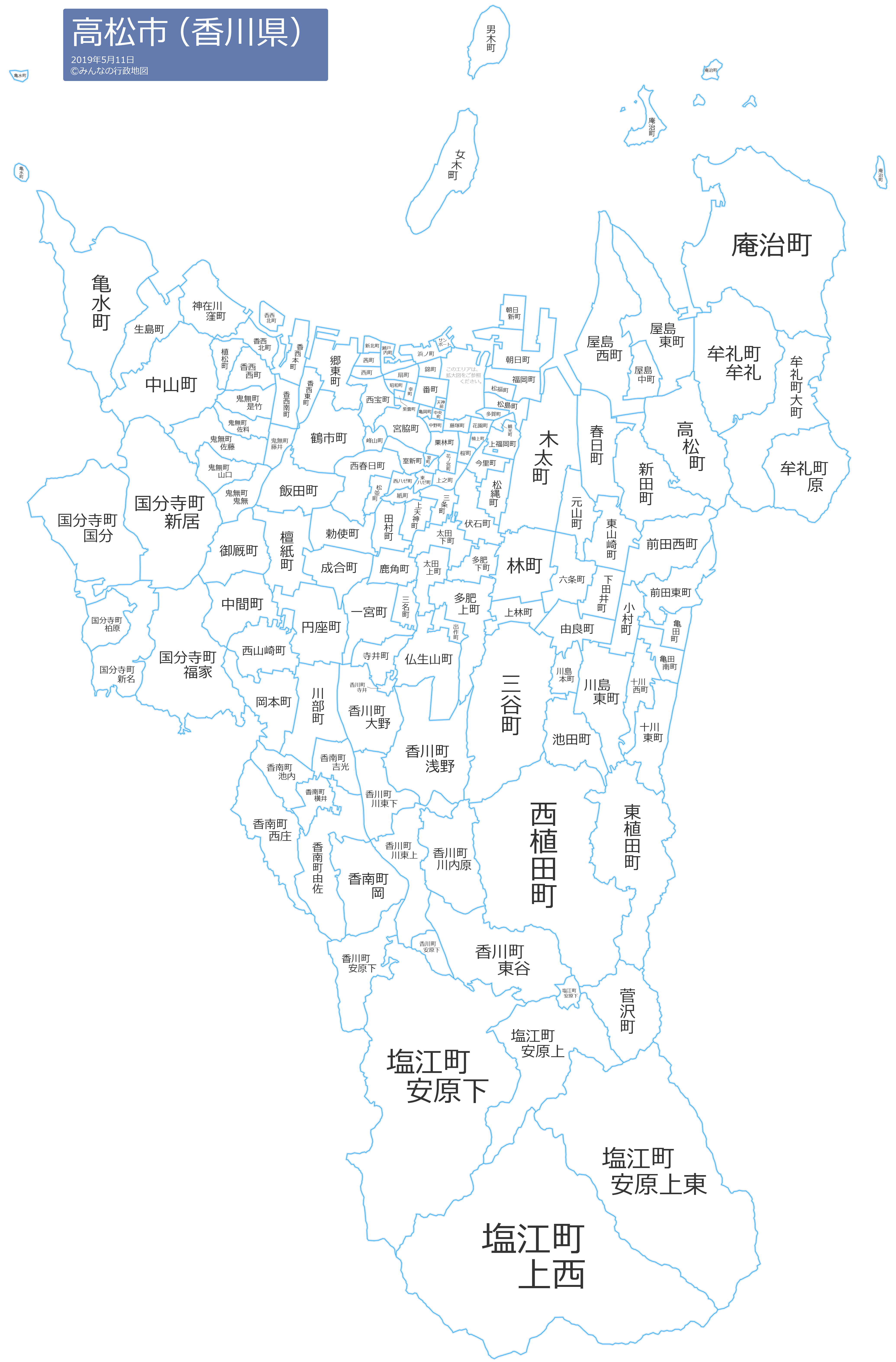 香川町浅野(かがわちょうあさの)香川町大野(かがわちょうおおの)香川町川内原(かがわちょうかわないはら)香川町川東上(かがわちょうかわひがしかみ)香川町川東下(かがわちょうかわひがししも)香川町寺井(かがわちょうてらい)香川町東谷(かがわちょうひがしたに)香川町安原下(かがわちょうやすはらしも)鍛冶屋町(かじやまち)春日町(かすがちょう)片原町(かたはらまち)鹿角町(かのつのちょう)上天神町(かみてんじんちょう)上之町(かみのちょう)上林町(かみはやしちょう)上福岡町(かみふくおかちょう)紙町(かみまち)亀井町(かめいちょう)亀岡町(かめおかちょう)亀田町(かめだちょう)亀田南町(かめだみなみまち)川島東町(かわしまひがしまち)川島本町(かわしまほんまち)川部町(かわなべちょう)瓦町(かわらまち)観光町(かんこうちょう)観光通(かんこうどおり)木太町(きたちょう)北浜町(きたはまちょう)鬼無町鬼無(きなしちょうきなし)鬼無町是竹(きなしちょうこれたけ)鬼無町佐藤(きなしちょうさとう)鬼無町佐料(きなしちょうさりょう)鬼無町藤井(きなしちょうふじい)鬼無町山口(きなしちょうやまぐち)楠上町(くすがみちょう)香西東町(こうざいひがしまち)香西西町(こうざいにしまち)香西南町(こうざいみなみまち)香西北町(こうざいきたまち)香西本町(こうざいほんまち)郷東町(ごうとうちょう)香南町池内(こうなんちょういけのうち)香南町岡(こうなんちょうおか)香南町西庄(こうなんちょうにしのしょう)香南町由佐(こうなんちょうゆさ)香南町横井(こうなんちょうよこい)香南町吉光(こうなんちょうよしみつ)国分寺町柏原(こくぶんじちょうかしはら)国分寺町国分(こくぶんじちょうこくぶ)国分寺町新名(こくぶんじちょうしんみょう)国分寺町新居(こくぶんじちょうにい)国分寺町福家(こくぶんじちょうふけ)寿町(ことぶきちょう)御坊町(ごぼうまち)紺屋町(こんやまち)