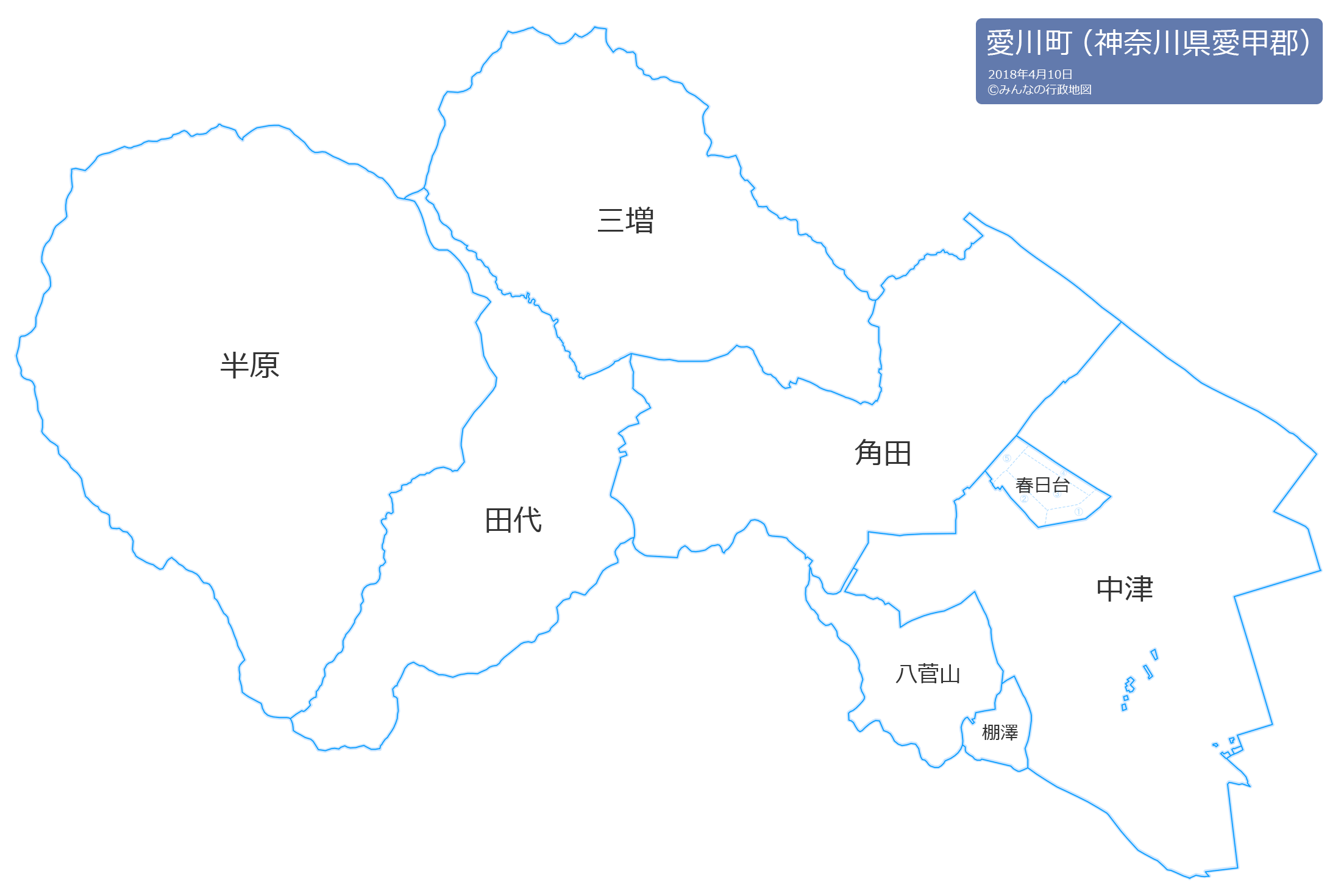 この愛川町の行政地図は、