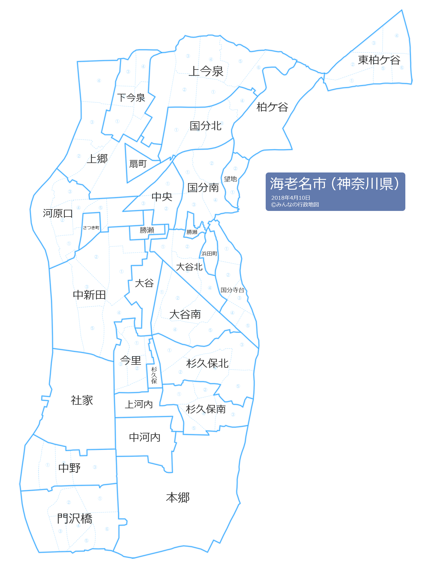 海老名市の地名と読み仮名