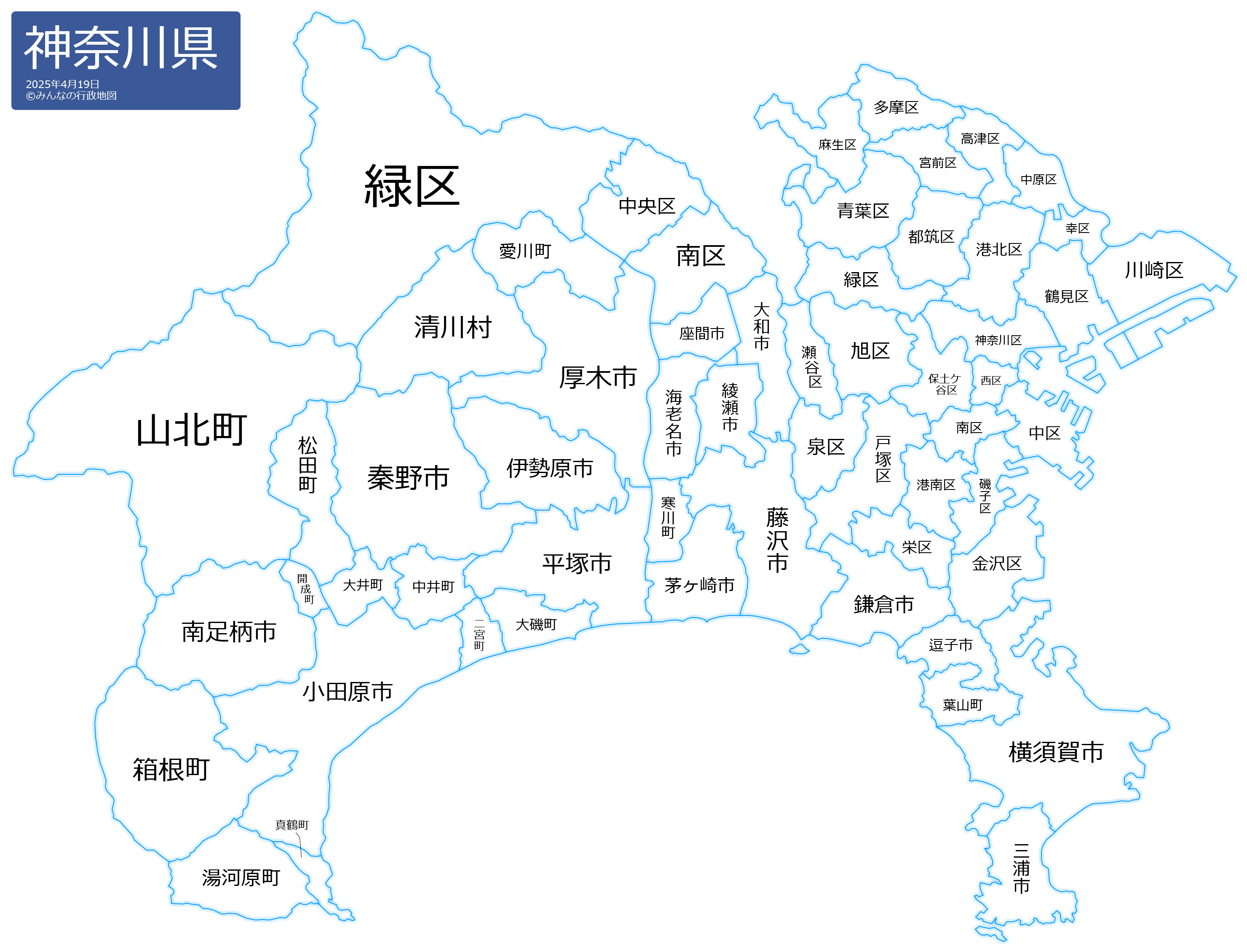 この神奈川県の行政地図は、