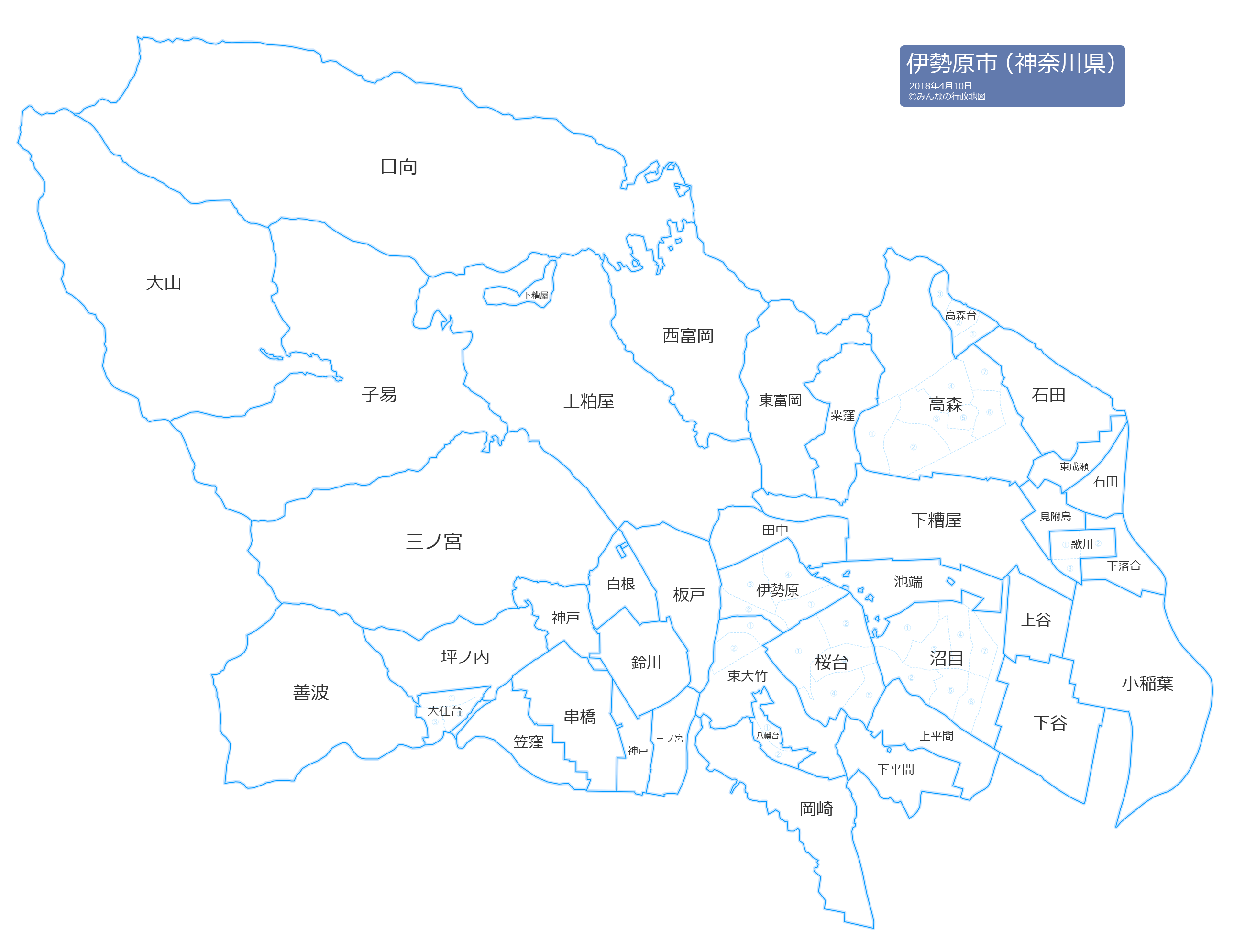 伊勢原市の地名と読み仮名