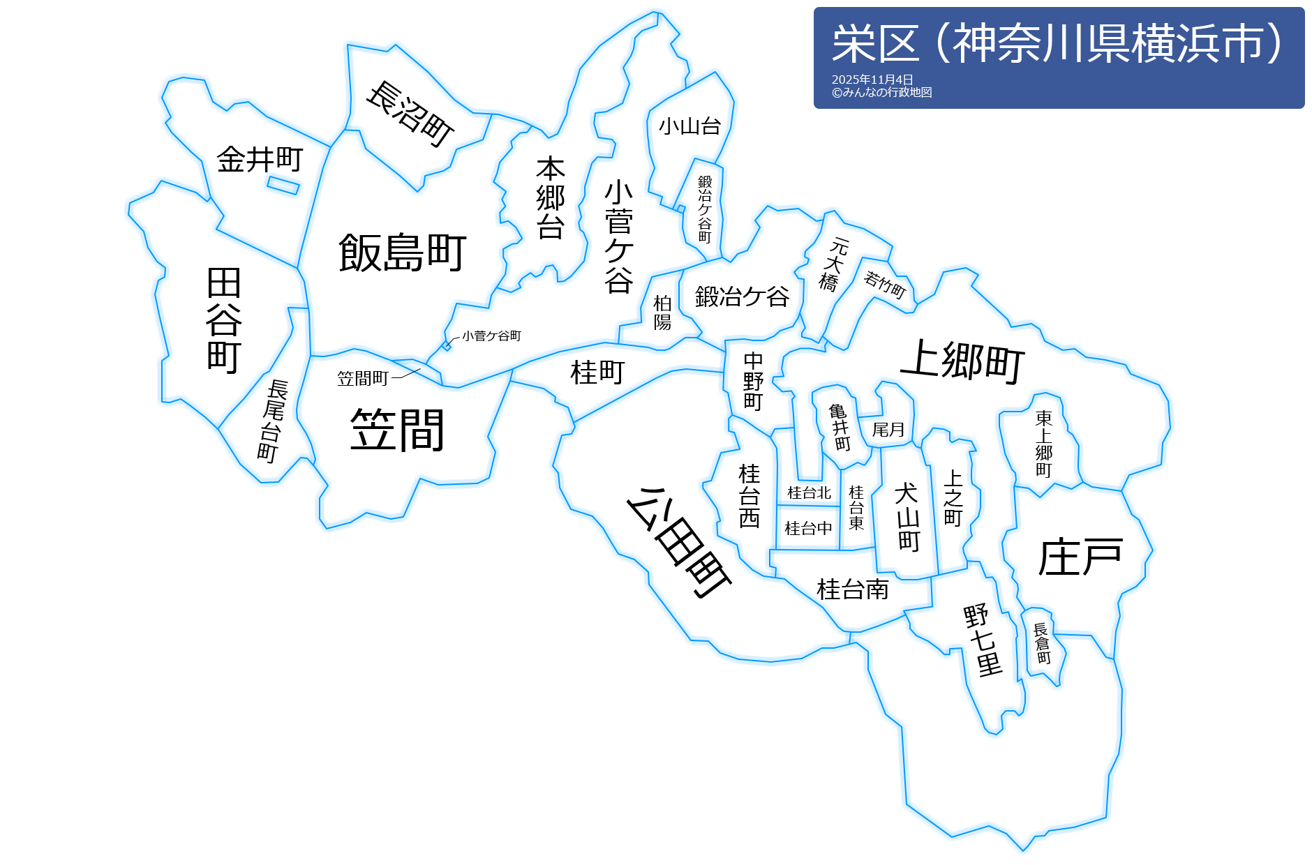 笠間(かさま)笠間町(かさまちょう)鍛冶ケ谷(かじがや)鍛冶ケ谷町(かじがやちょう)桂台北(かつらだいきた)桂台中(かつらだいなか)桂台西(かつらだいにし)桂台東(かつらだいひがし)桂台南(かつらだいみなみ)桂町(かつらちょう)金井町(かないちょう)上郷町(かみごうちょう)上之町(かみのちょう)亀井町(かめいちょう)公田町(くでんちょう)小菅ケ谷(こすがや)小菅ケ谷町(こすがやちょう)小山台(こやまだい)