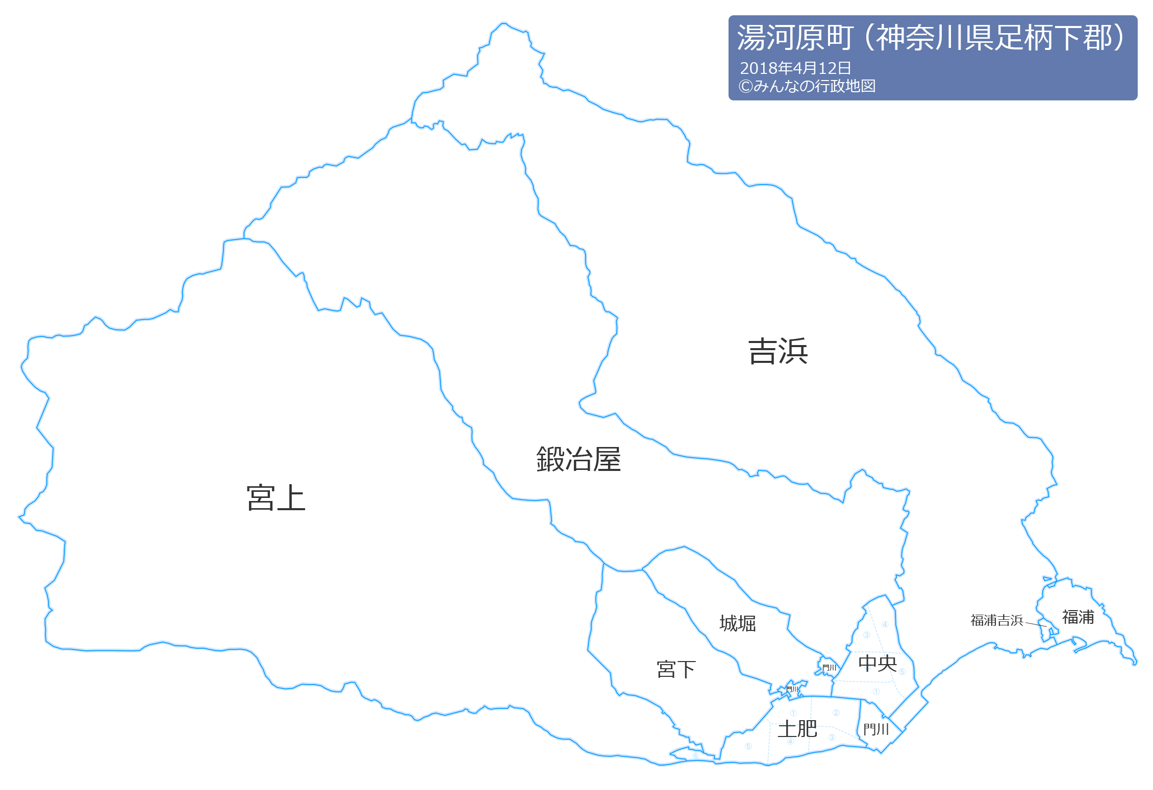 この湯河原町の行政地図は、