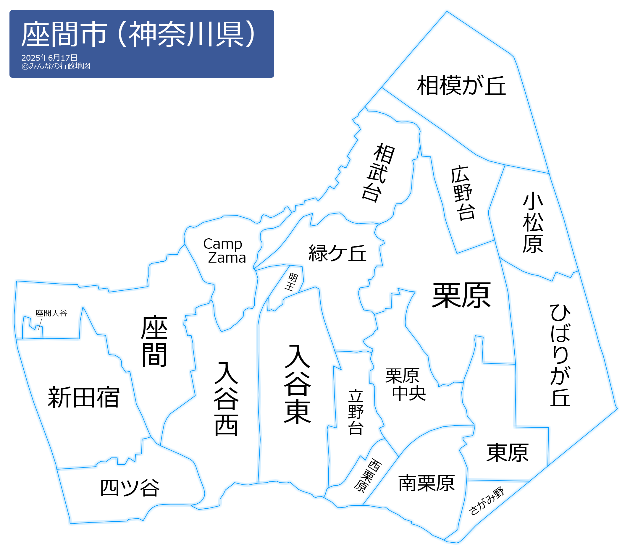 相模が丘(さがみがおか)さがみ野(さがみの)座間(ざま)座間入谷(ざまいりや)新田宿(しんでんじゅく)相武台(そうぶだい)