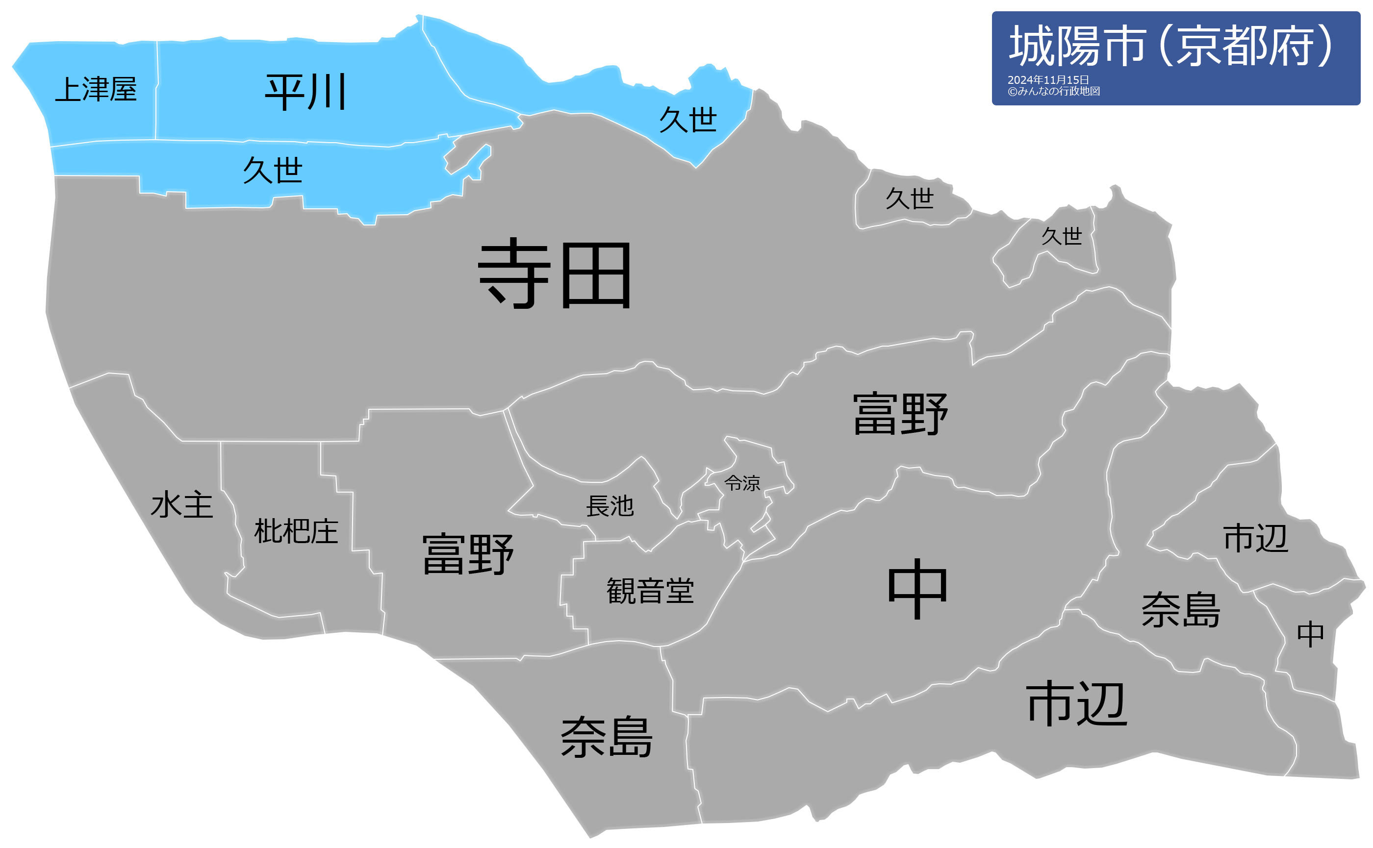 この城陽市の行政地図は、