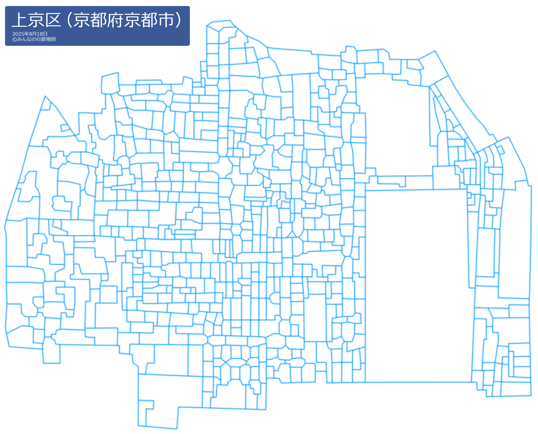 戒光寺町(かいこうじちょう)甲斐守町(かいのかみちょう)鏡石町(かがみいしちょう)加賀屋町(かがやちょう)勘解由小路町(かげゆこうじちょう)梶井町(かじいちょう)頭町(かしらちょう)柏清盛町(かしわきよもりちょう)春日町(かすがちょう)片原町(かたはらちょう)上生洲町(かみいけすちょう)上小川町(かみおがわちょう)上鍛冶町(かみかじちょう)上片原町(かみかたはらちょう)上木下町(かみきのしたちょう)上御霊竪町(かみごりょうたてまち)上御霊中町(かみごりょうなかまち)上御霊馬場町(かみごりょうばばちょう)上御霊前町(かみごりょうまえちょう)上立売町(かみだちうりちょう)上立売東町(かみだちうりひがしちょう)上天神町(かみてんじんちょう)上塔之段町(かみとうのだんちょう)上之町(かみのちょう)上堀川町(かみほりかわちょう)上神輿町(かみみこしちょう)紙屋川町(かみやがわちょう)上柳原町(かみやなぎはらちょう)亀木町(かめきちょう)亀屋町(かめやちょう)烏丸町(からすまちょう)川瀬町(かわせちょう)歓喜寺前町(かんきじまえちょう)歓喜町(かんきちょう)観三橘町(かんさんたちばなちょう)岩栖院町(がんすいんちょう)観世町(かんぜちょう)観音寺門前町(かんのんじもんぜんちょう)勘兵衛町(かんべえちょう)菊屋町(きくやちょう)北伊勢殿構町(きたいせどのかまえちょう)北伊勢屋町(きたいせやちょう)北猪熊町(きたいのくまちょう)北蟹屋町(きたかにやちょう)北兼康町(きたかねやすちょう)北玄蕃町(きたげんばちょう)北小路中之町(きたこうじなかのちょう)北小路室町(きたこうじむろまち)北小大門町(きたこだいもんちょう)北新在家町(きたしんざいけちょう)北俵町(きたたわらちょう)北仲之町(きたなかのちょう)北之御門町(きたのごもんちょう)北之辺町(きたのべちょう)北舟橋町(きたふなはしちょう)北町(きたまち)北横町(きたよこちょう)木下突抜町(きのしたつきぬけちょう)木屋之町(きやのちょう)九軒町(きゅうけんちょう)京都御苑(きょうとぎょえん)清元町(きよもとちょう)桐木町(きりのきちょう)錦砂町(きんしゃちょう)金馬場町(きんばばちょう)櫛笥町(くしげちょう)薬屋町(くすりやちょう)花開院町(けいかいんちょう)継孝院町(けいこういんちょう)玄蕃町(げんばちょう)玄武町(げんぶちょう)幸在町(こうざいちょう)荒神町(こうじんちょう)高台院竪町(こうだいいんたてまち)高台院町(こうだいいんちょう)革堂内町(こうどううちちょう)講堂町(こうどうちょう)革堂町(こうどうちょう)革堂町(こうどうちょう)革堂仲之町(こうどうなかのちょう)革堂西町(こうどうにしまち)革堂之内町(こうどうのうちちょう)革堂前之町(こうどうまえのちょう)高徳寺町(こうとくじちょう)御三軒町(ごさんげんちょう)小島町(こじまちょう)御所八幡町(ごしょはちまんちょう)五町目(ごちょうめ)五町目町(ごちょうめちょう)小寺町(こでらちょう)小伝馬町(こでんまちょう)後藤町(ごとうちょう)近衛町(このえちょう)近衛殿表町(このえでんおもてちょう)近衛殿北口町(このえでんきたぐちちょう)五番町(ごばんちょう)駒之町(こまのちょう)米屋町(こめやちょう)小山町(こやまちょう)御霊町(ごりょうちょう)坤高町(こんたかちょう)