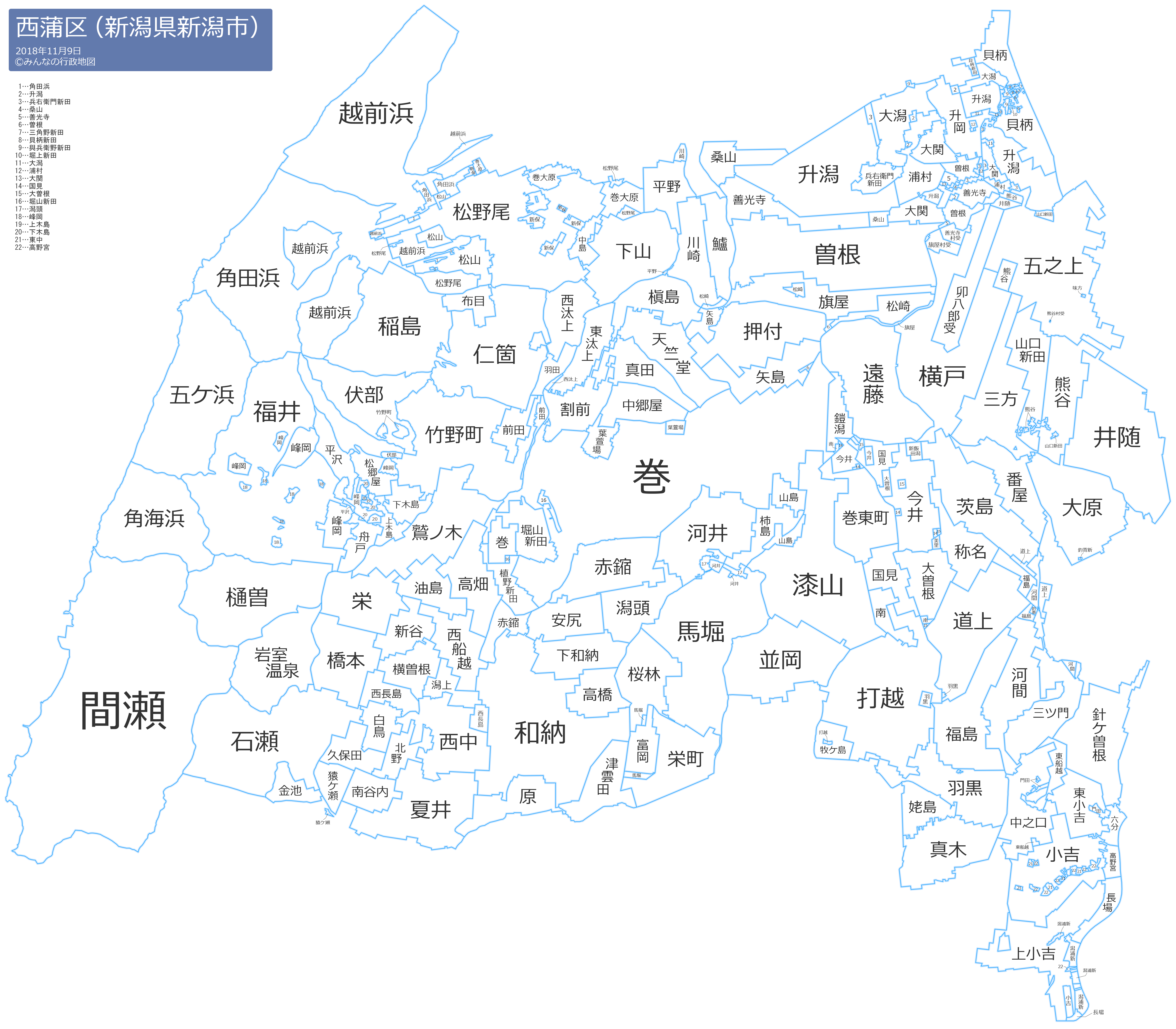 西蒲区の地名と読み仮名