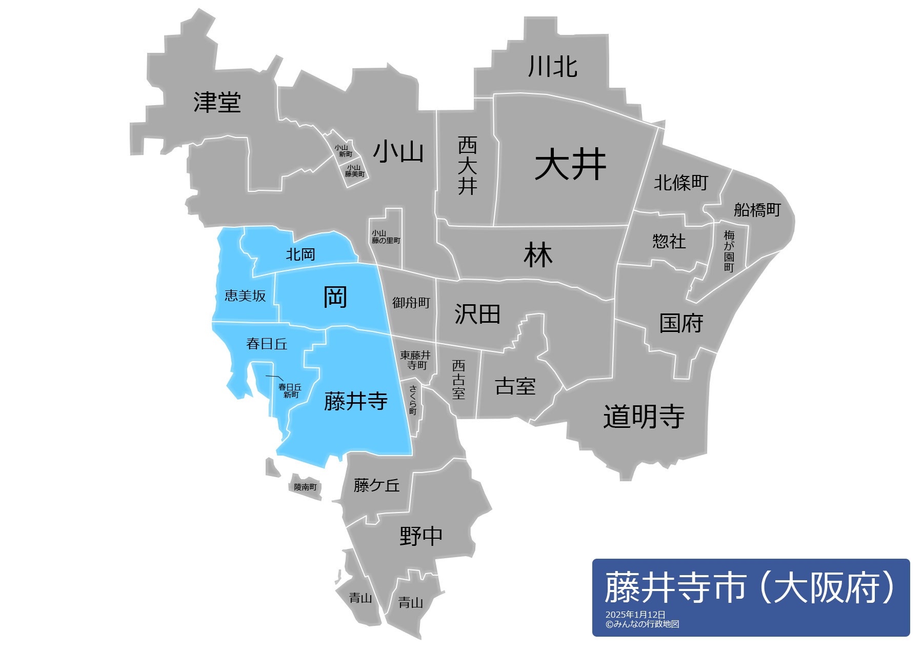 藤井寺市の地名と読み仮名