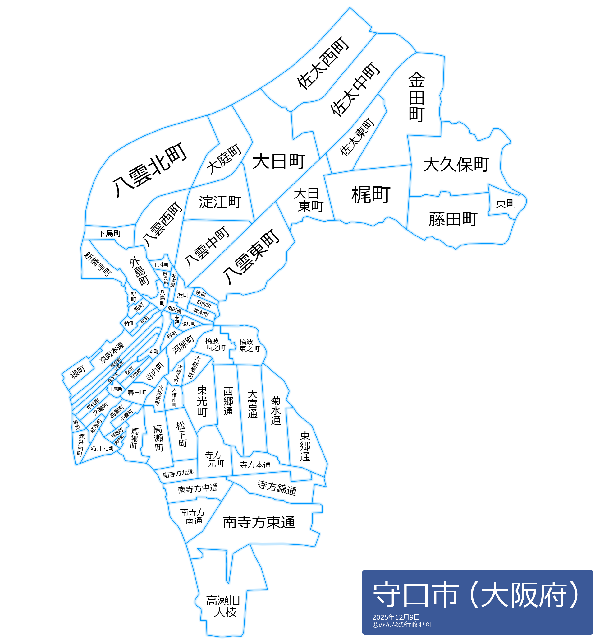 守口市の地名と読み仮名