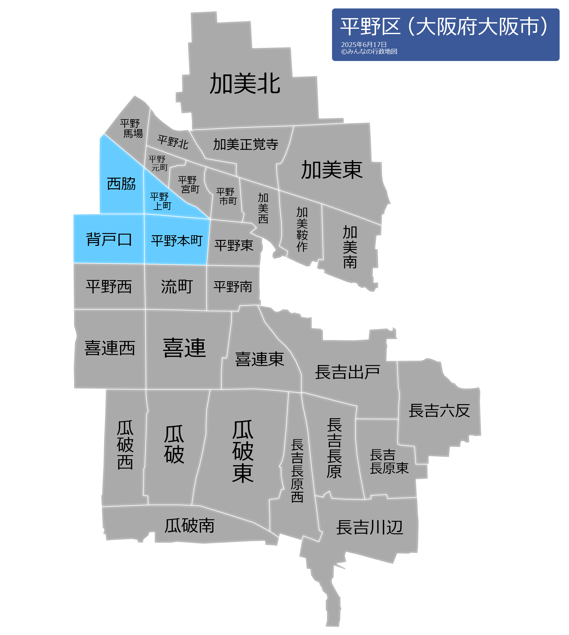 平野区の地名と読み仮名
