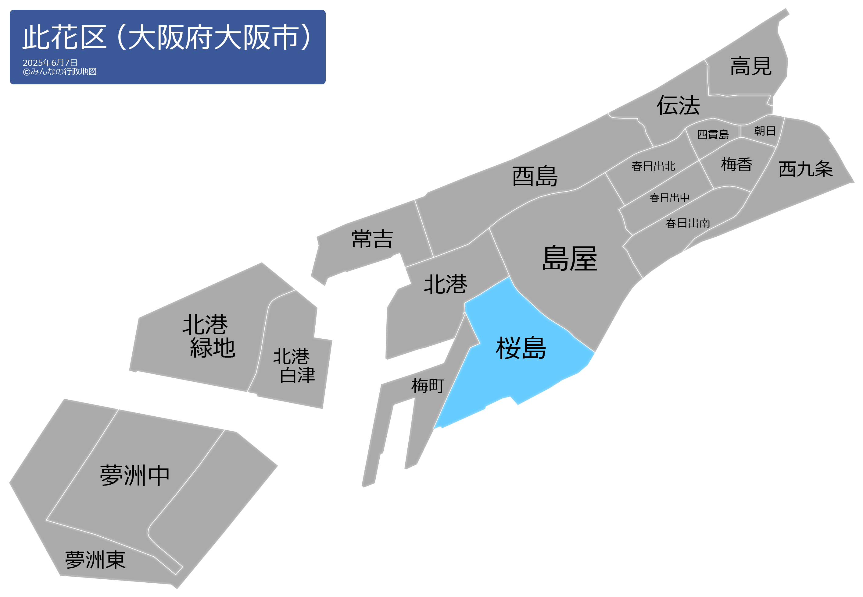 この此花区の行政地図は、