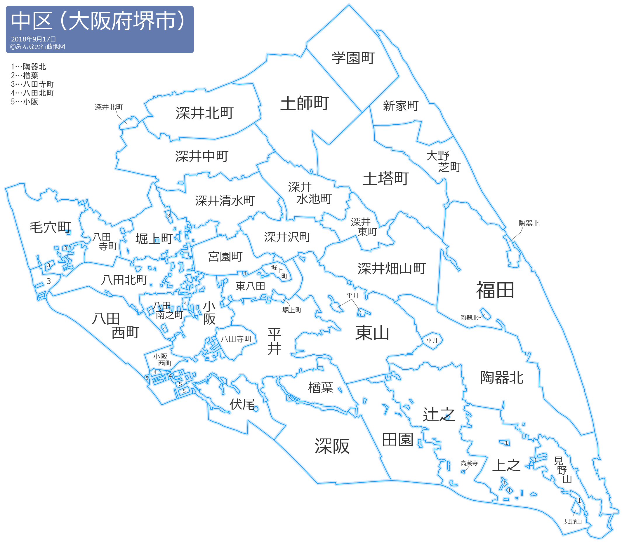 土師町(はぜちょう)八田寺町(はんだいじちょう)八田北町(はんだきたちょう)八田西町(はんだにしまち)八田南之町(はんだみなみのちょう)東八田(ひがしはんだ)東山(ひがしやま)平井(ひらい)深井北町(ふかいきたまち)深井沢町(ふかいさわまち)深井清水町(ふかいしみずちょう)深井中町(ふかいなかまち)深井畑山町(ふかいはたやまちょう)深井東町(ふかいひがしまち)深井水池町(ふかいみずがいけちょう)深阪(ふかさか)福田(ふくだ)伏尾(ふせお)堀上町(ほりあげちょう)