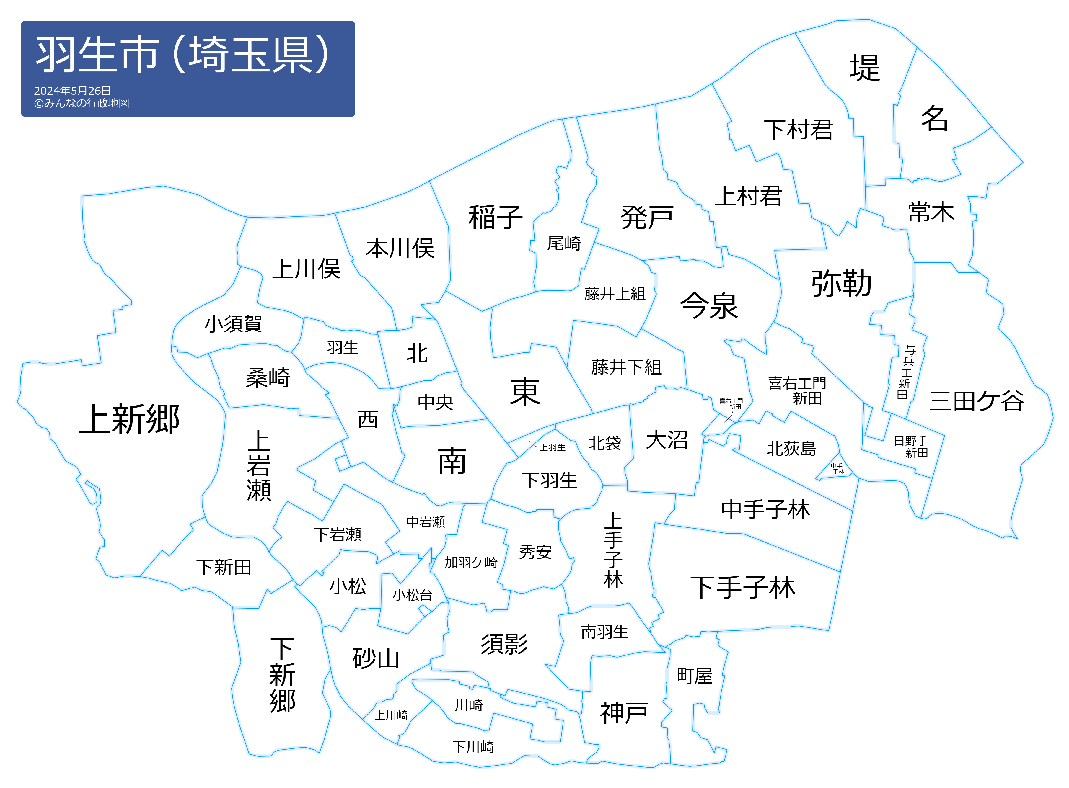 町屋(まちや)三田ケ谷(みたかや)南(みなみ)南羽生(みなみはにゅう)名(みょう)弥勒(みろく)