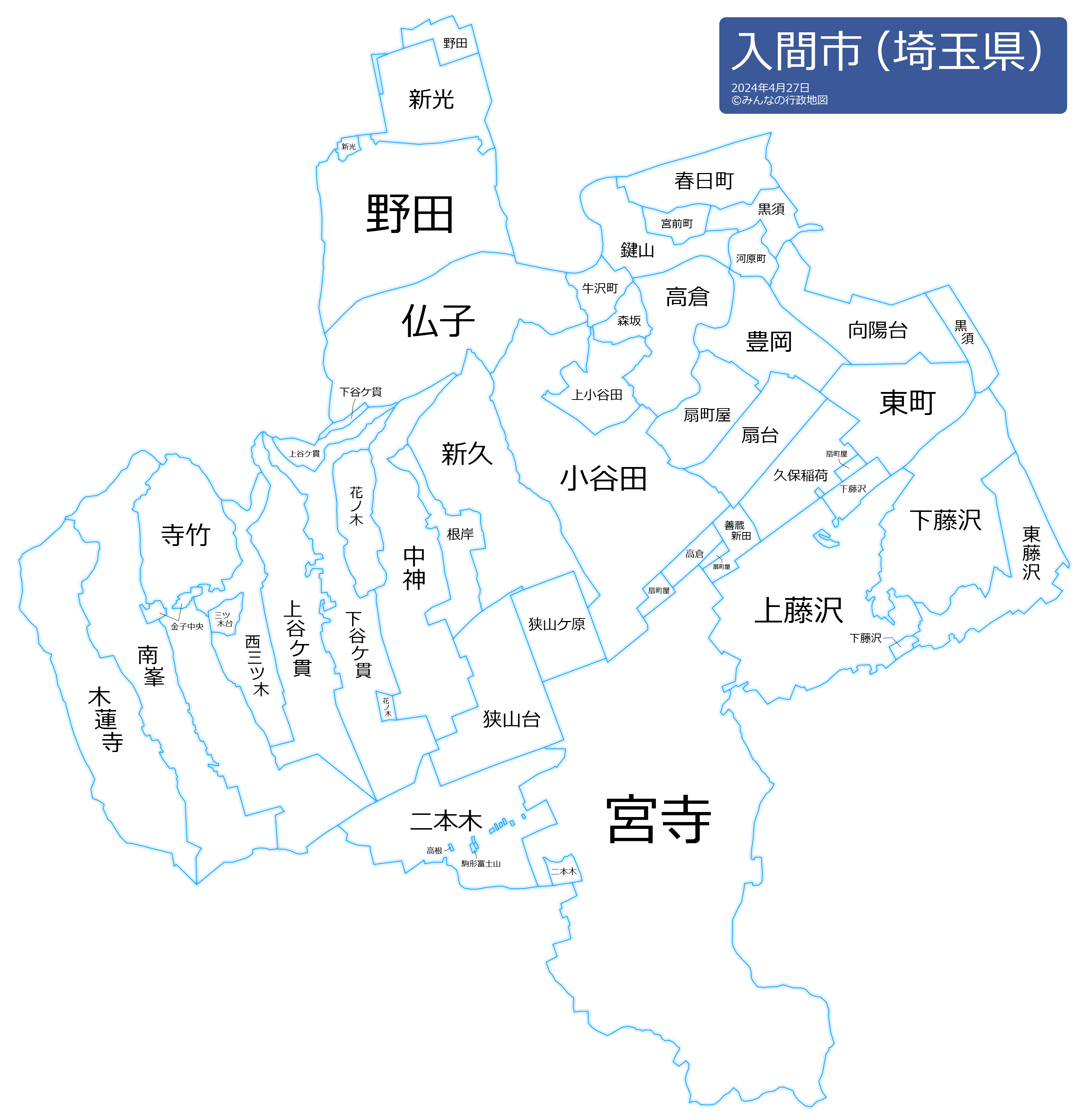 狭山ケ原(さやまがはら)狭山台(さやまだい)下藤沢(しもふじさわ)下谷ケ貫(しもやがぬき)新光(しんこう)善蔵新田(ぜんぞうしんでん)