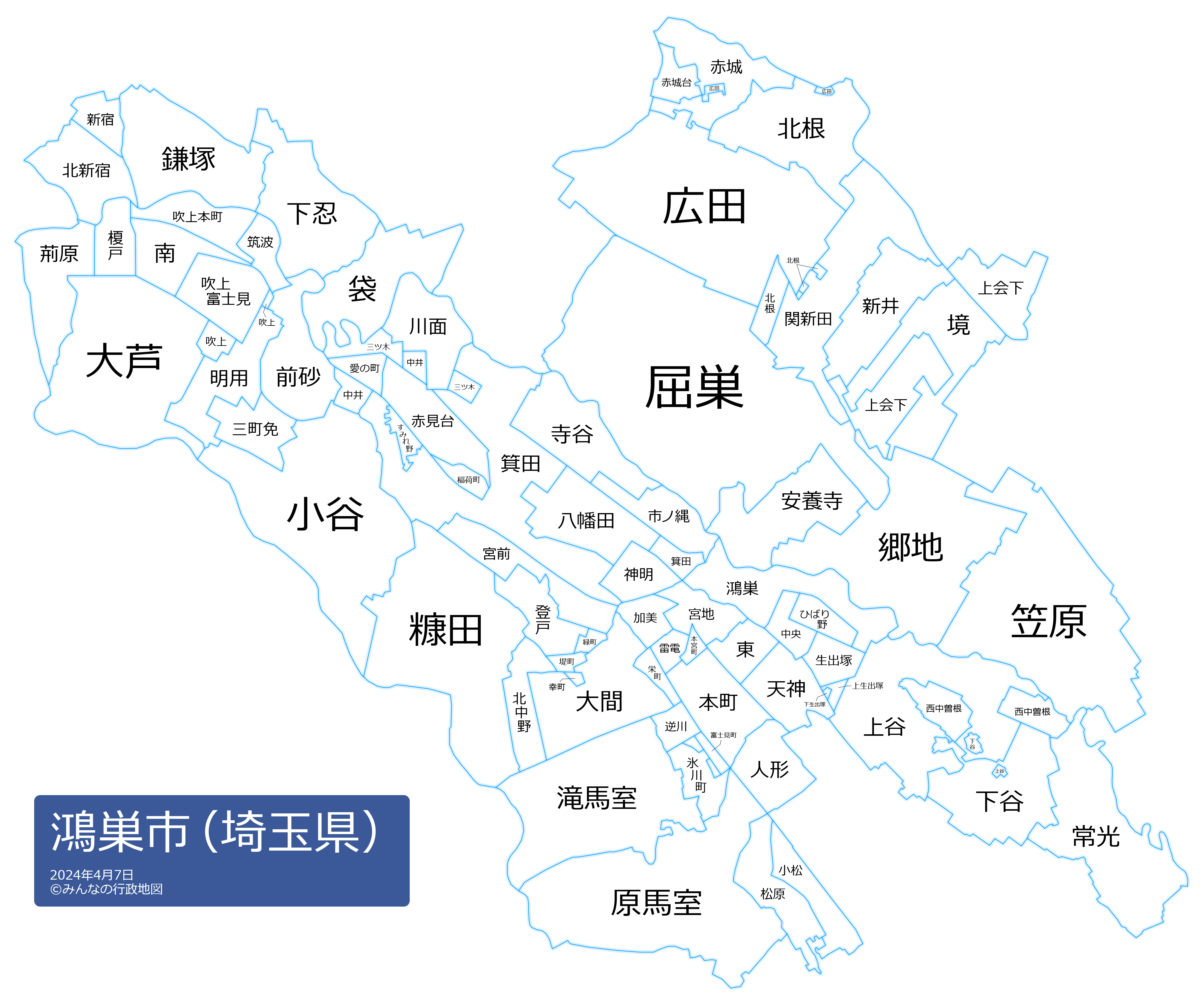 鴻巣市の地名と読み仮名