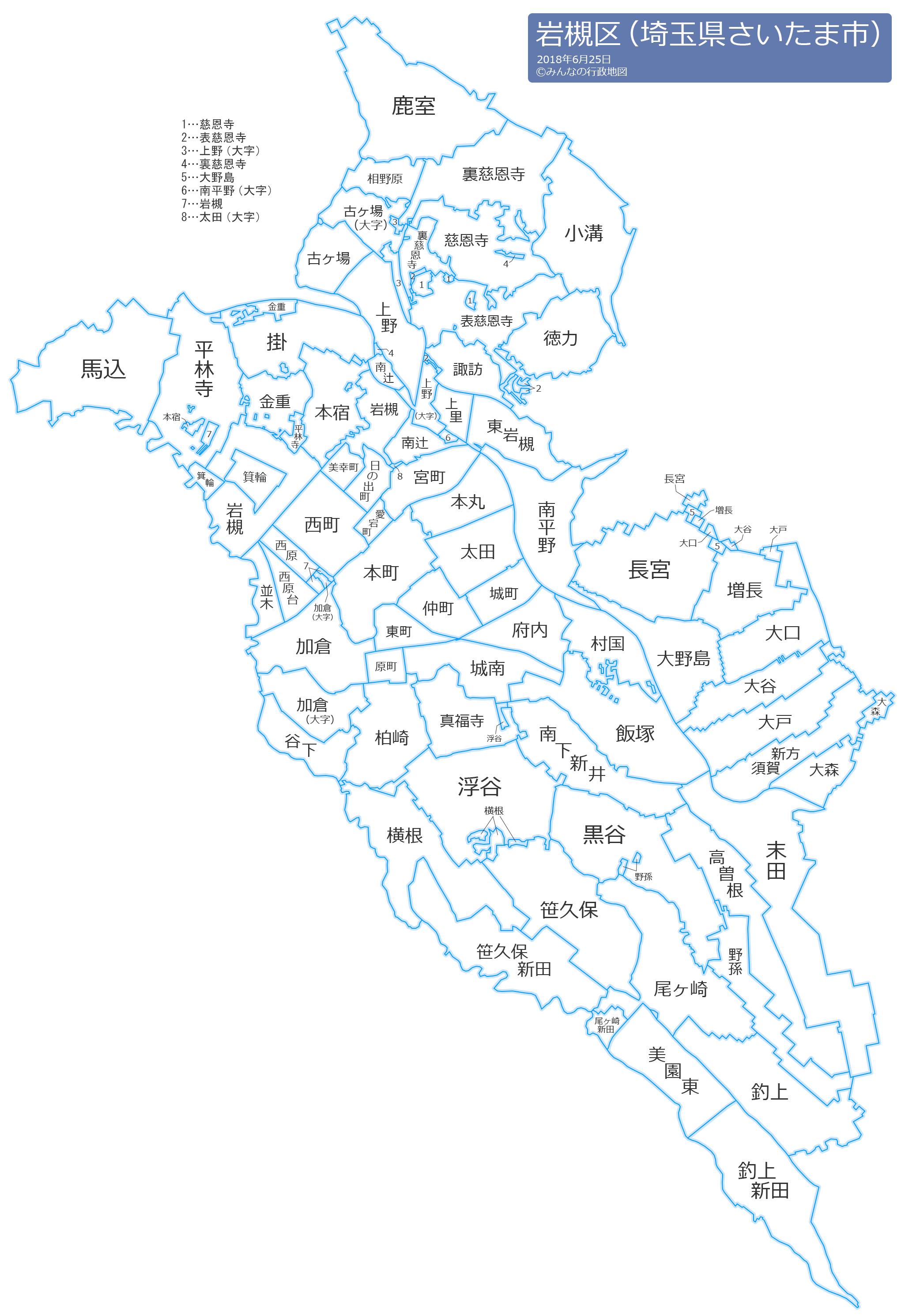 岩槻区の地名と読み仮名