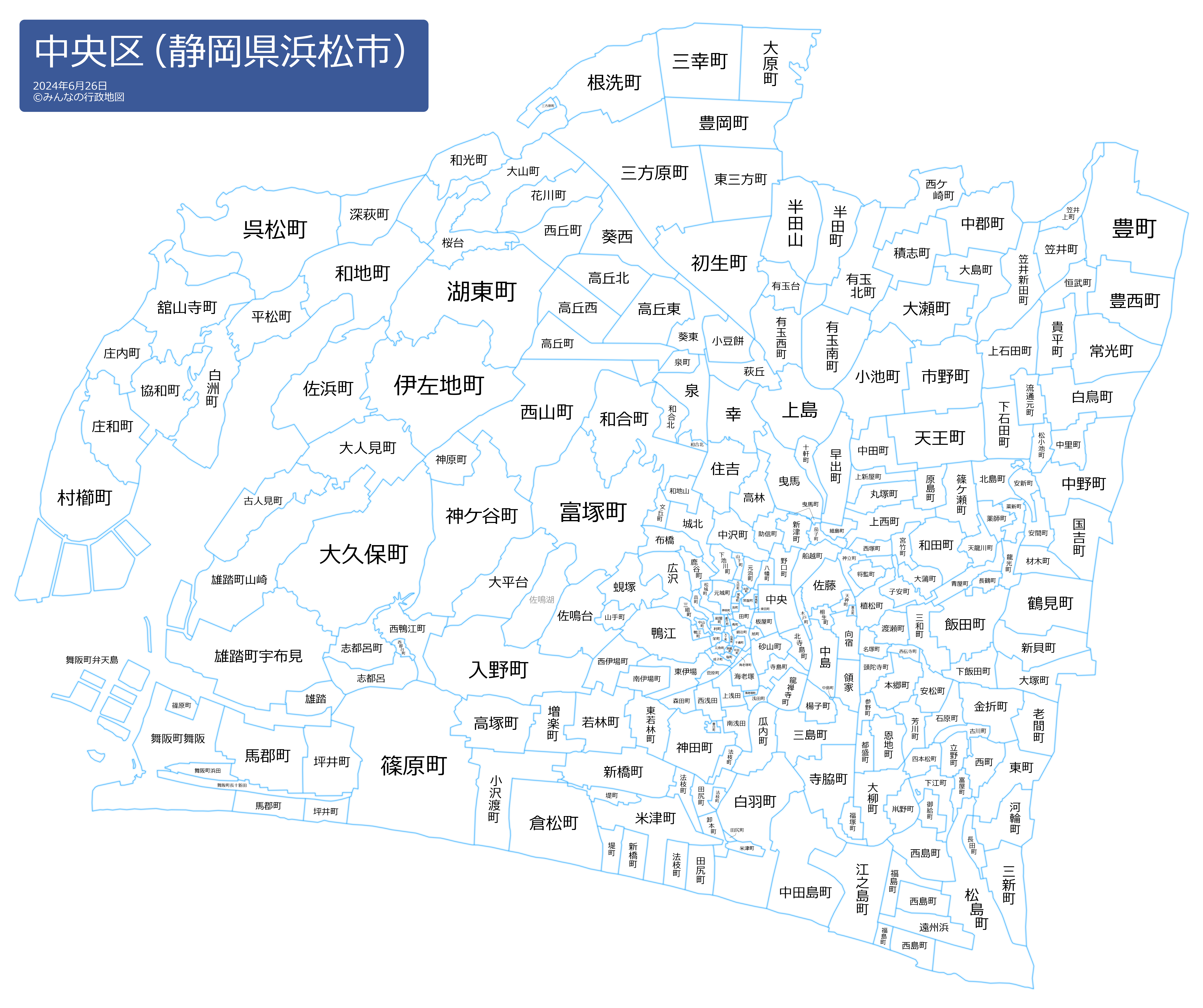 相生町(あいおいちょう)葵西(あおいにし)葵東(あおいひがし)青屋町(あおやちょう)浅田町(あさだちょう)旭町(あさひちょう)小豆餅(あずきもち)有玉北町(ありたまきたまち)有玉台(ありたまだい)有玉西町(ありたまにしまち)有玉南町(ありたまみなみまち)安新町(あんしんちょう)安間町(あんまちょう)飯田町(いいだちょう)池町(いけまち)伊左地町(いさじちょう)石原町(いしはらちょう)泉(いずみ)泉町(いずみちょう)板屋町(いたやまち)市野町(いちのちょう)入野町(いりのちょう)植松町(うえまつちょう)瓜内町(うりうちちょう)江之島町(えのしまちょう)海老塚(えびつか)海老塚町(えびつかちょう)遠州浜(えんしゅうはま)老間町(おいまちょう)大蒲町(おおかばちょう)大久保町(おおくぼちょう)大島町(おおしまちょう)大瀬町(おおせちょう)大塚町(おおつかちょう)大原町(おおはらちょう)大人見町(おおひとみちょう)大平台(おおひらだい)大柳町(おおやぎちょう)大山町(おおやまちょう)卸本町(おろしほんまち)尾張町(おわりちょう)恩地町(おんぢちょう)